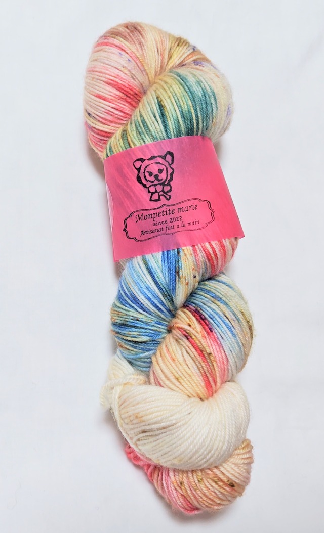 bamboo・merino・fluffy『ピンクレインボー』中細から合太 約100g/350m