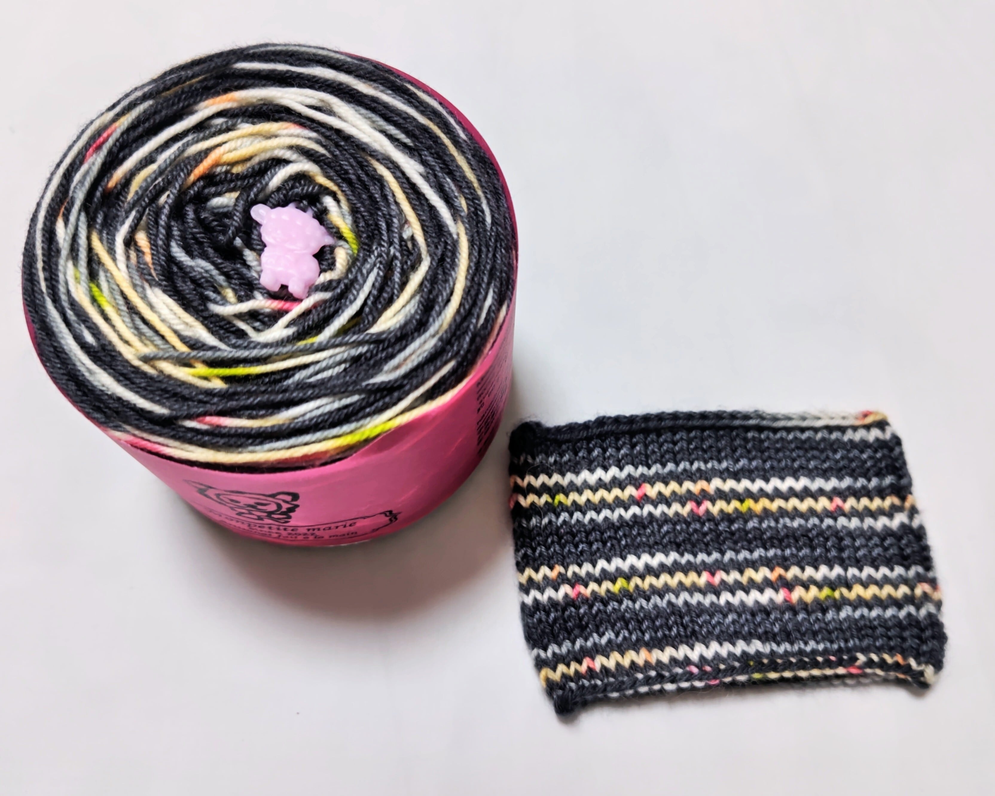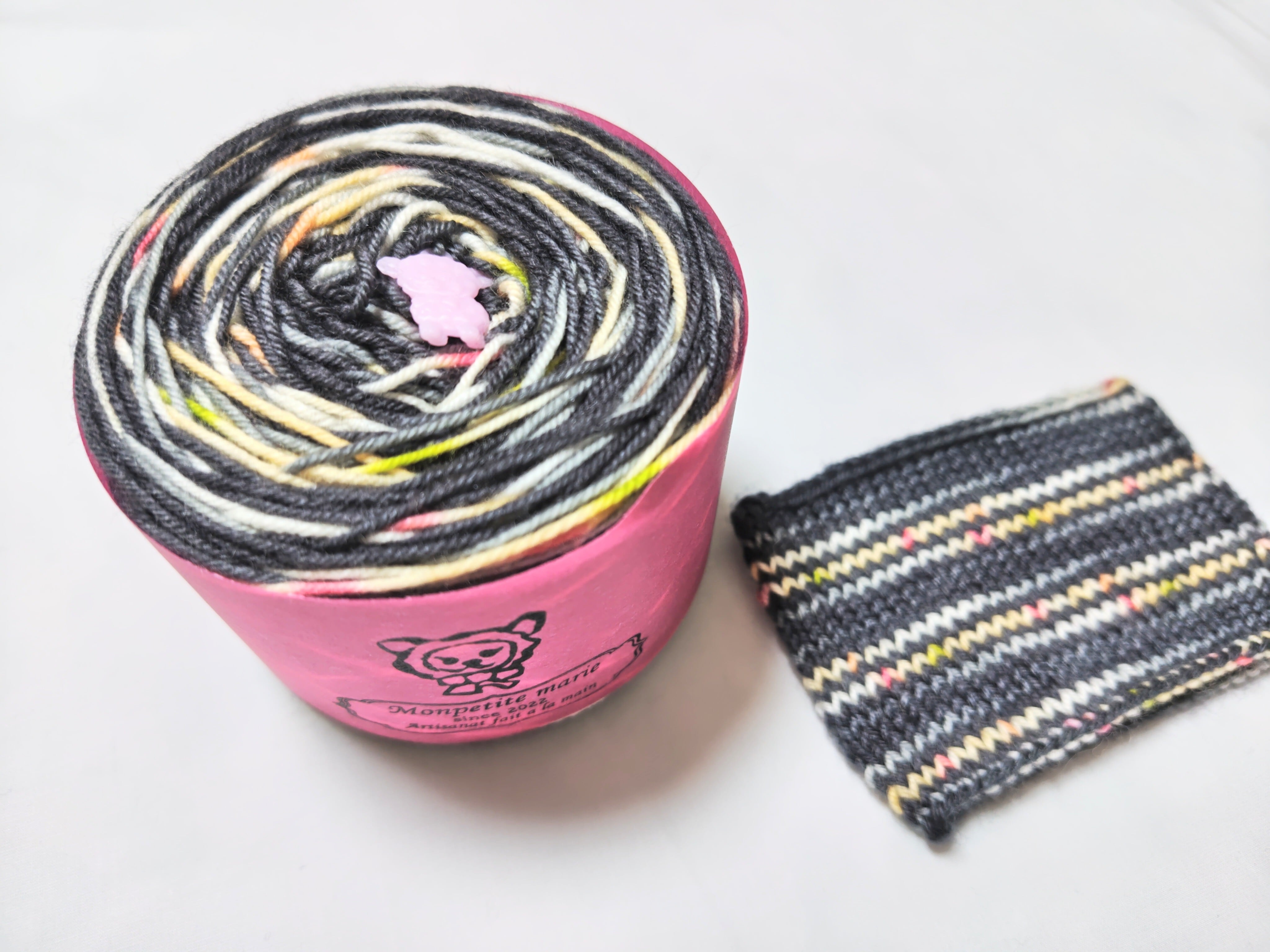 糸端がわかりやすいように樹脂で出来たチャームがついています。編む時に取り外してご使用下さい。(チャームは小さなものなのでお子さまや、ペットの誤飲等にお気をつけ下さい。)