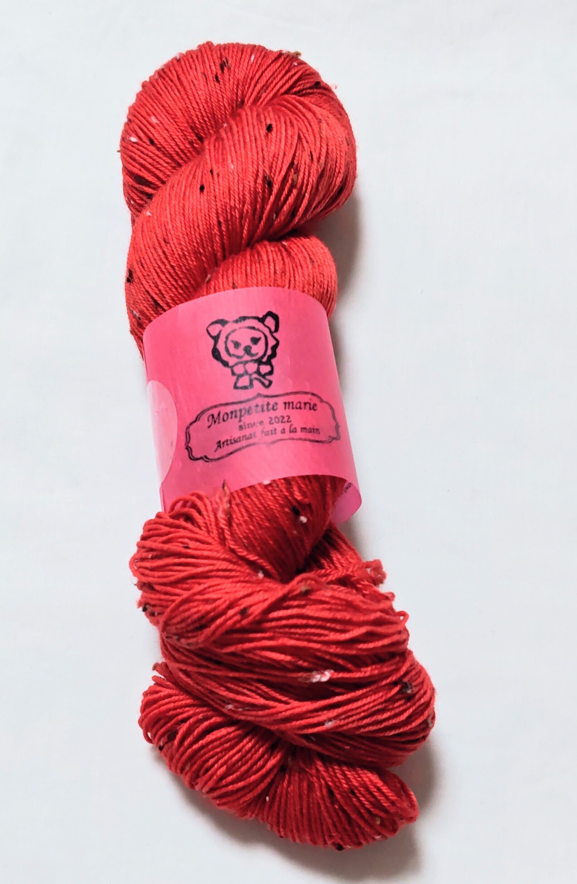 手染めの特徴で、全く同じものを染めることができません。柄や模様の出方は編む方の手加減や、使う針、編み方によって変わってきます。見本はあくまで参考です。できるだけ商品と同じ色に近づけて撮影していますが、お使いのモニターによって違う色合いに見えることがあります。