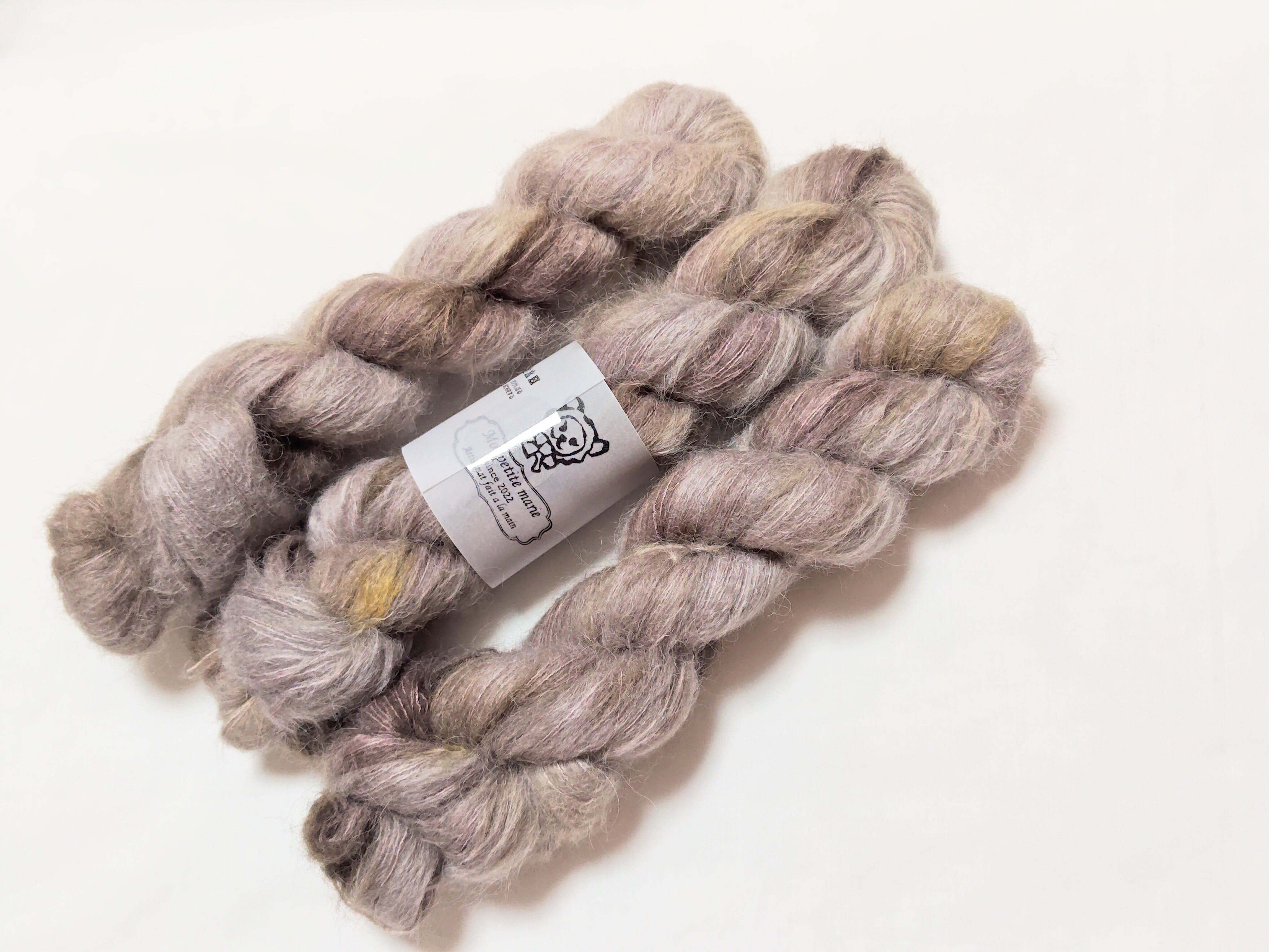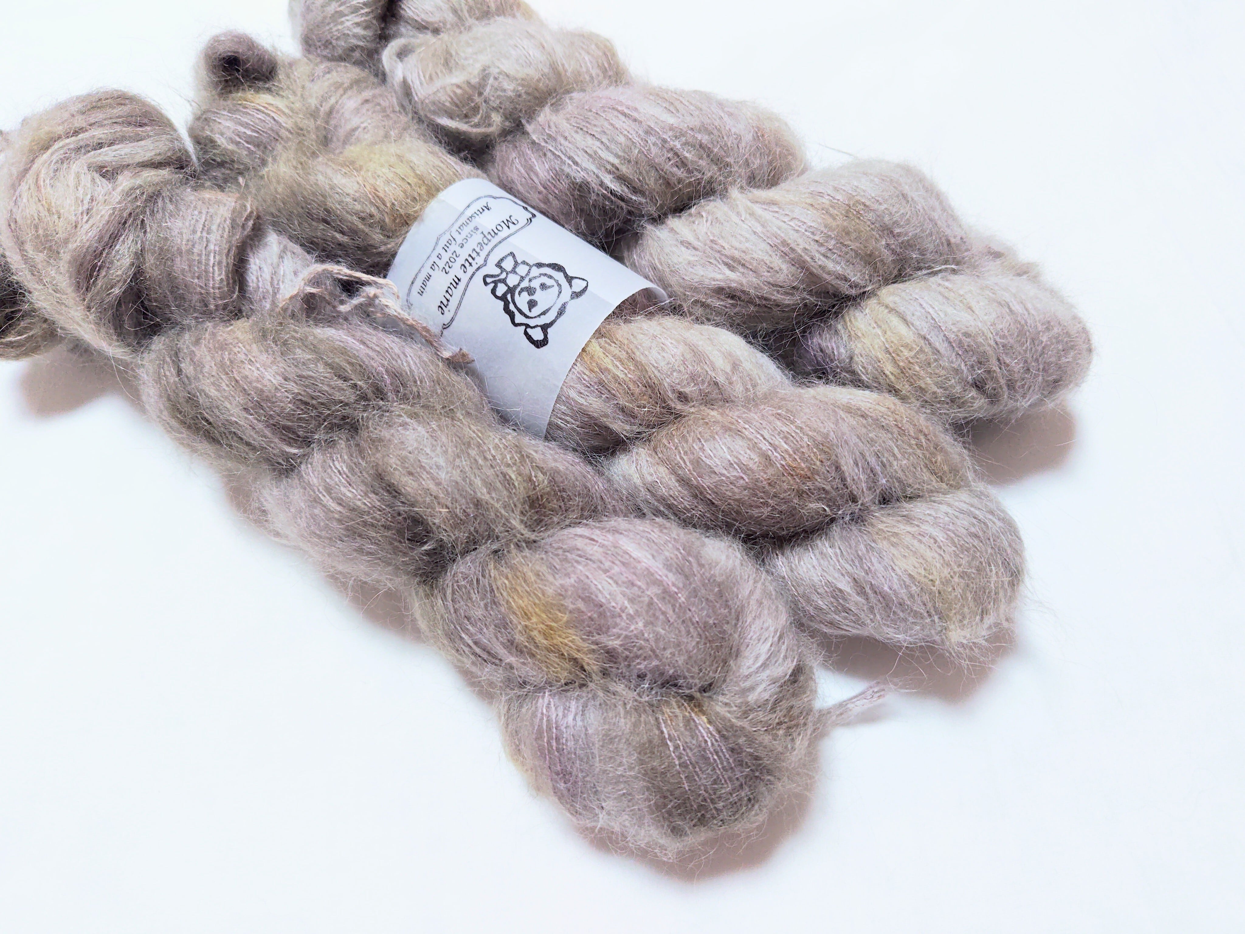 とても柔らかいスリ種のアルパカと、シルクの芯でできた2plyのlaceweight yarnです。