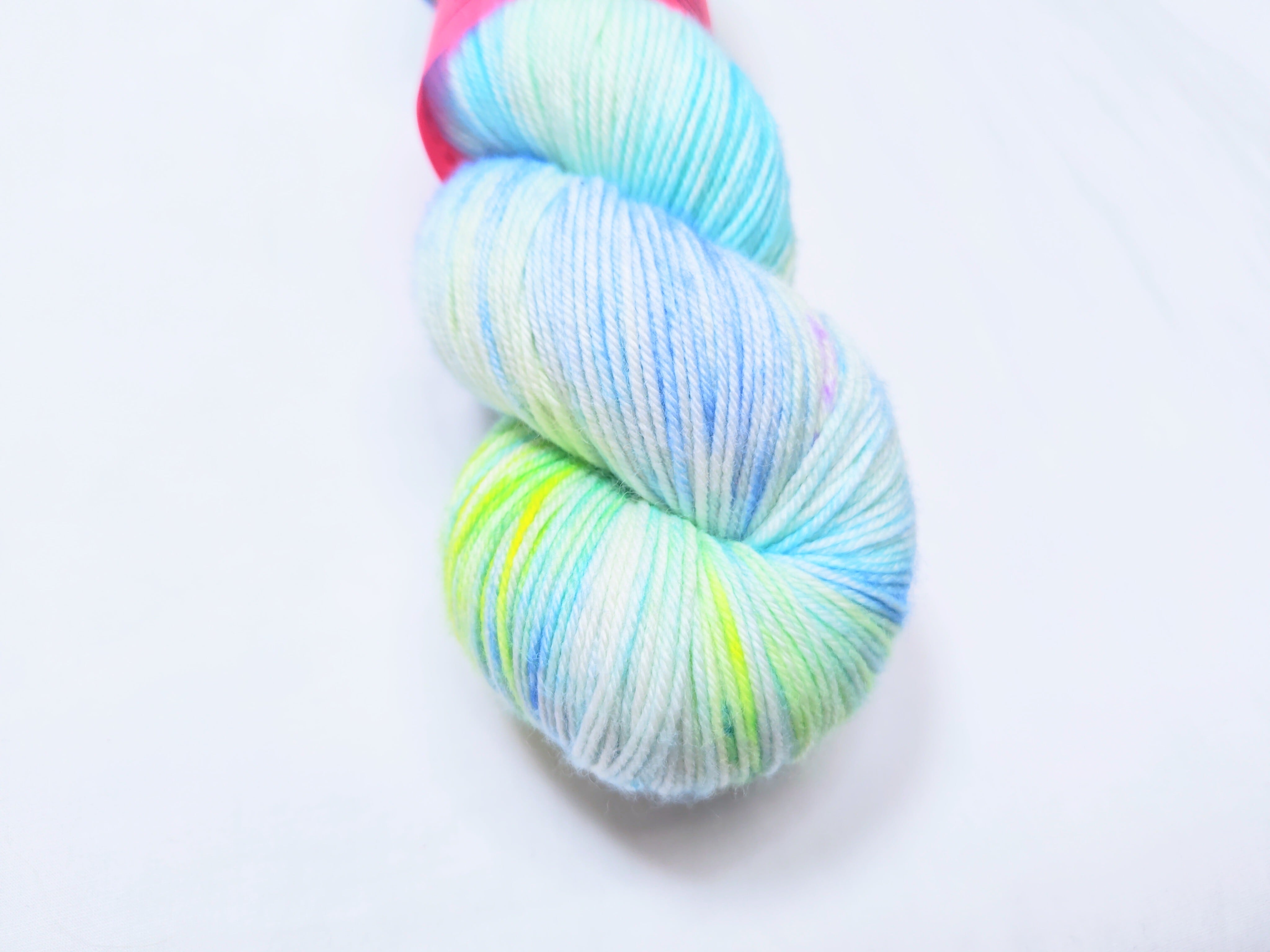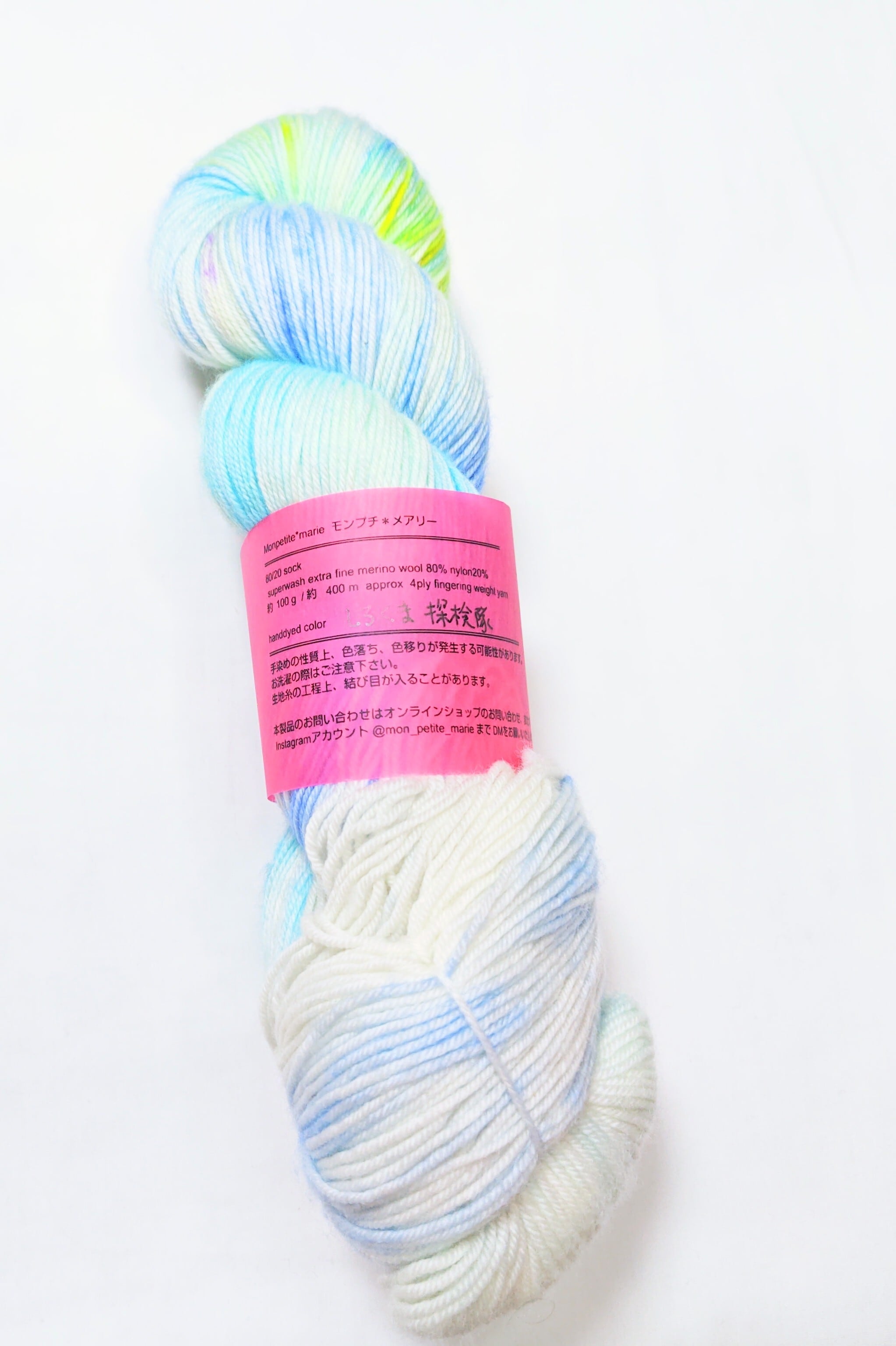 防縮加工されたエクストラファインメリノウール80%ナイロン20%を含みます。中細 fingering weight 4本よりのソックヤーンです。