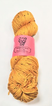 『MyOlive』の指定糸のカラーと同じカラーで染めてみました。とても好きな色で気に入っています。和からしの色。美味しそうでもあるし、ゴールド色にも見えます。セーター等の広い面積でも圧迫感がない素敵な色です。