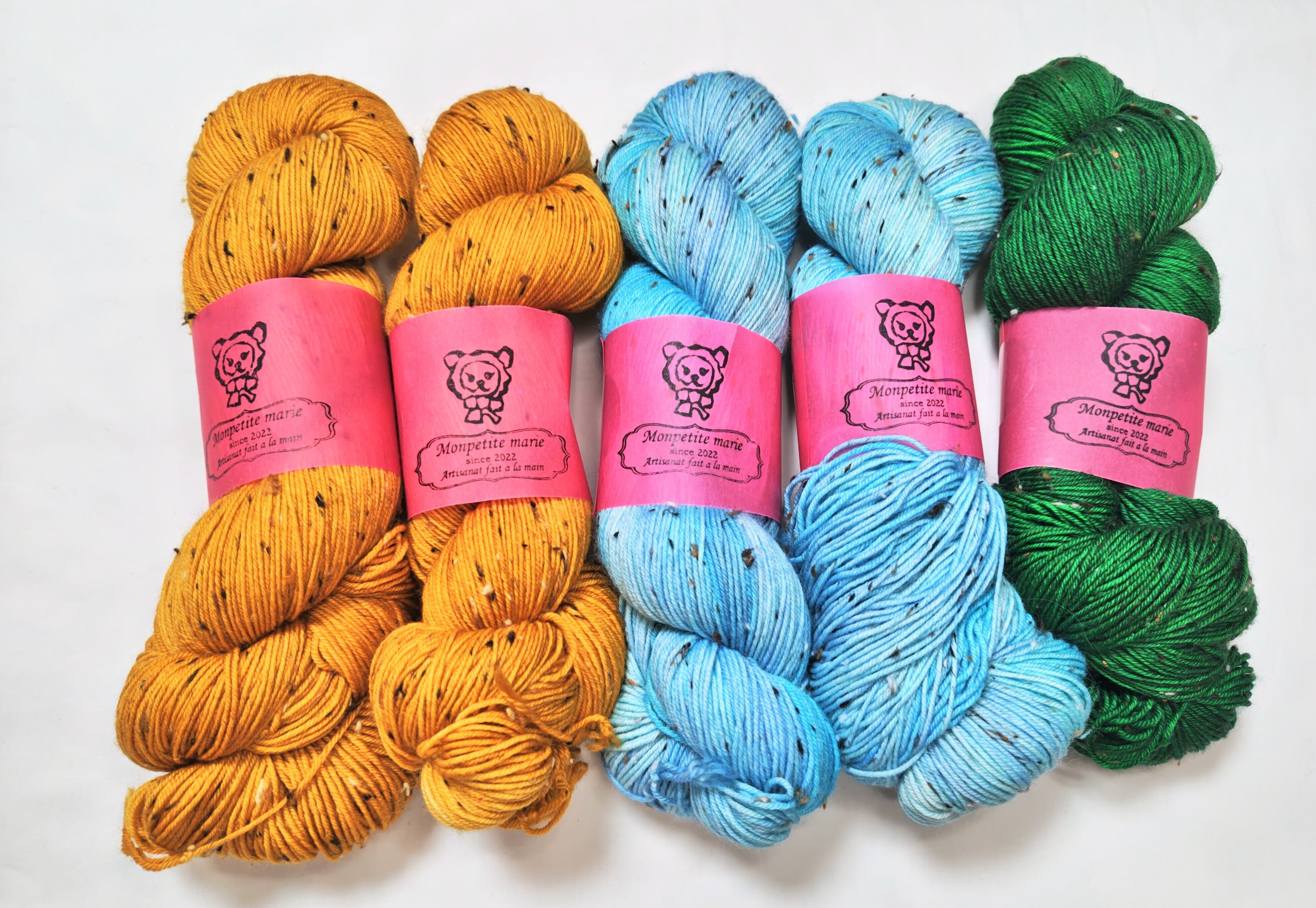 *濃い色の手染め毛糸は色移行することがあります。水通しや、お洗濯の際は他のものとは分けて行なってください。