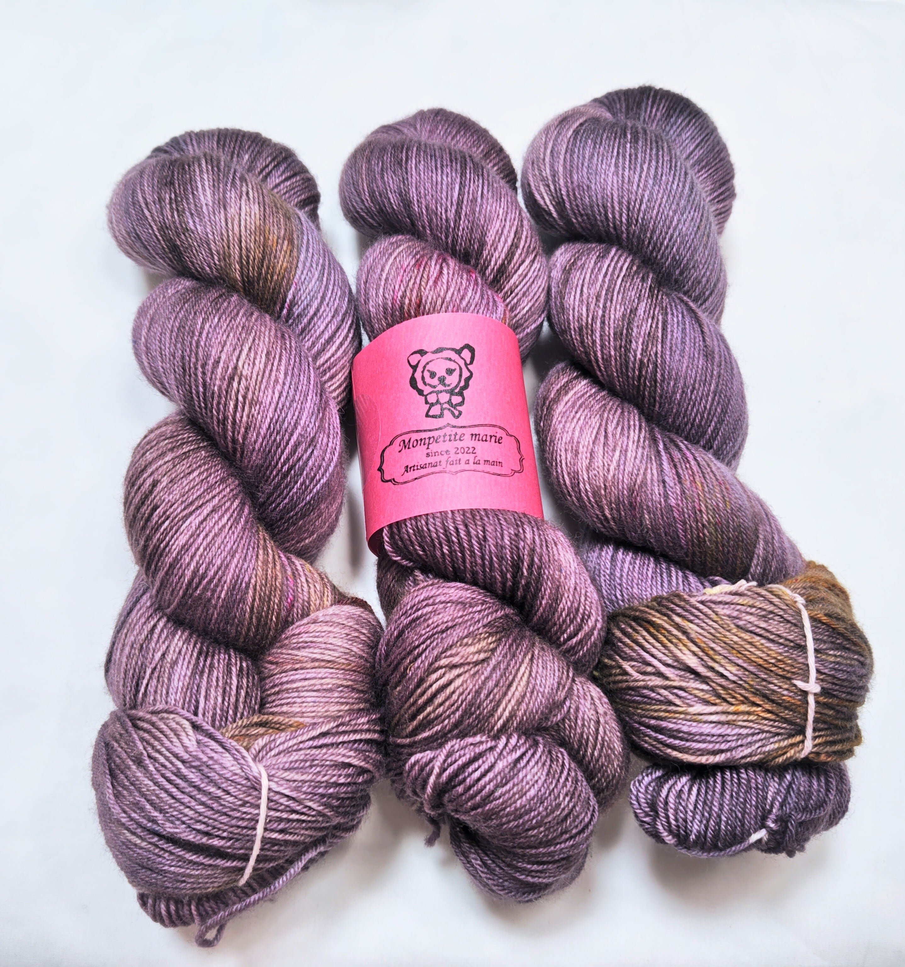 防縮加工されたファインメリノウール75%ナイロン25%を含みます。中細 fingering weightの4本よりの糸です。詳しくは、yarn baseをご覧ください。