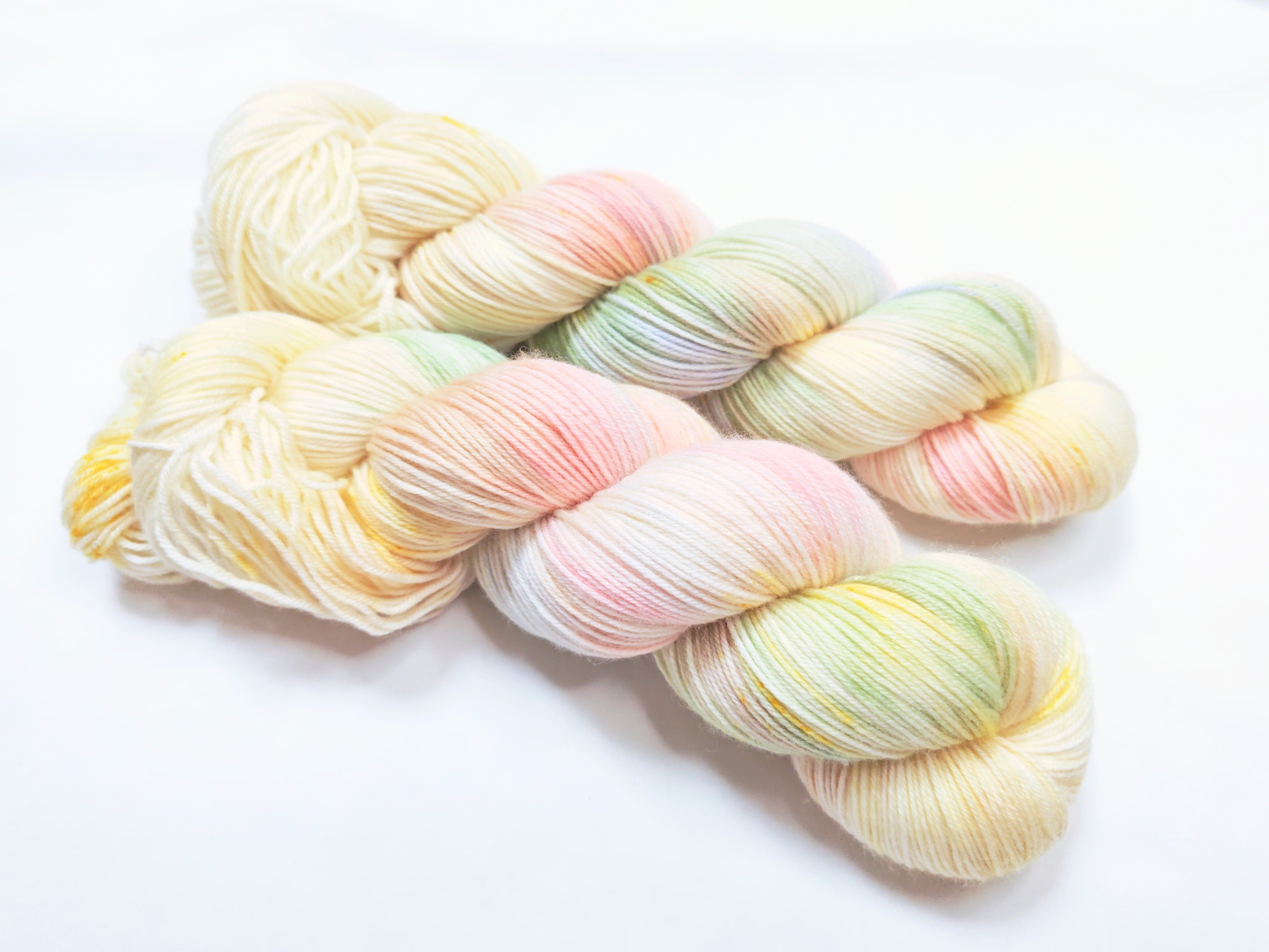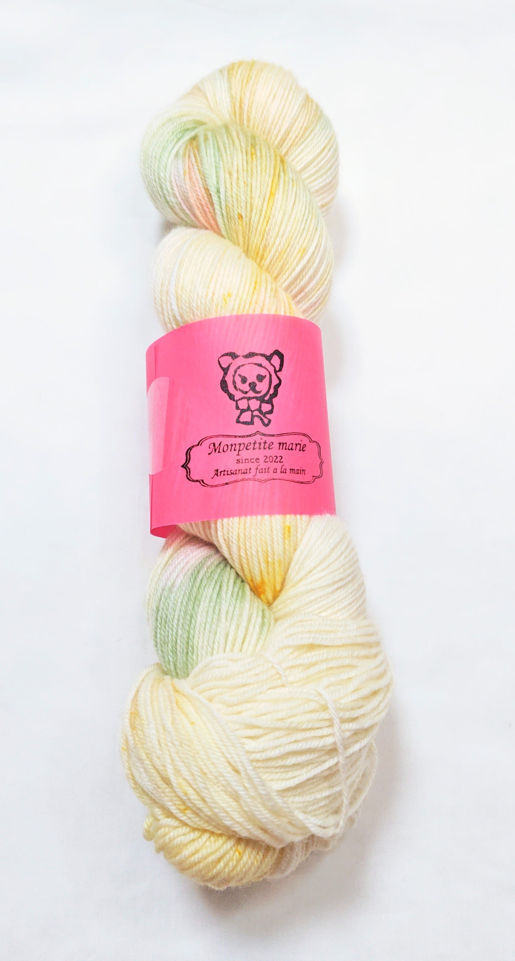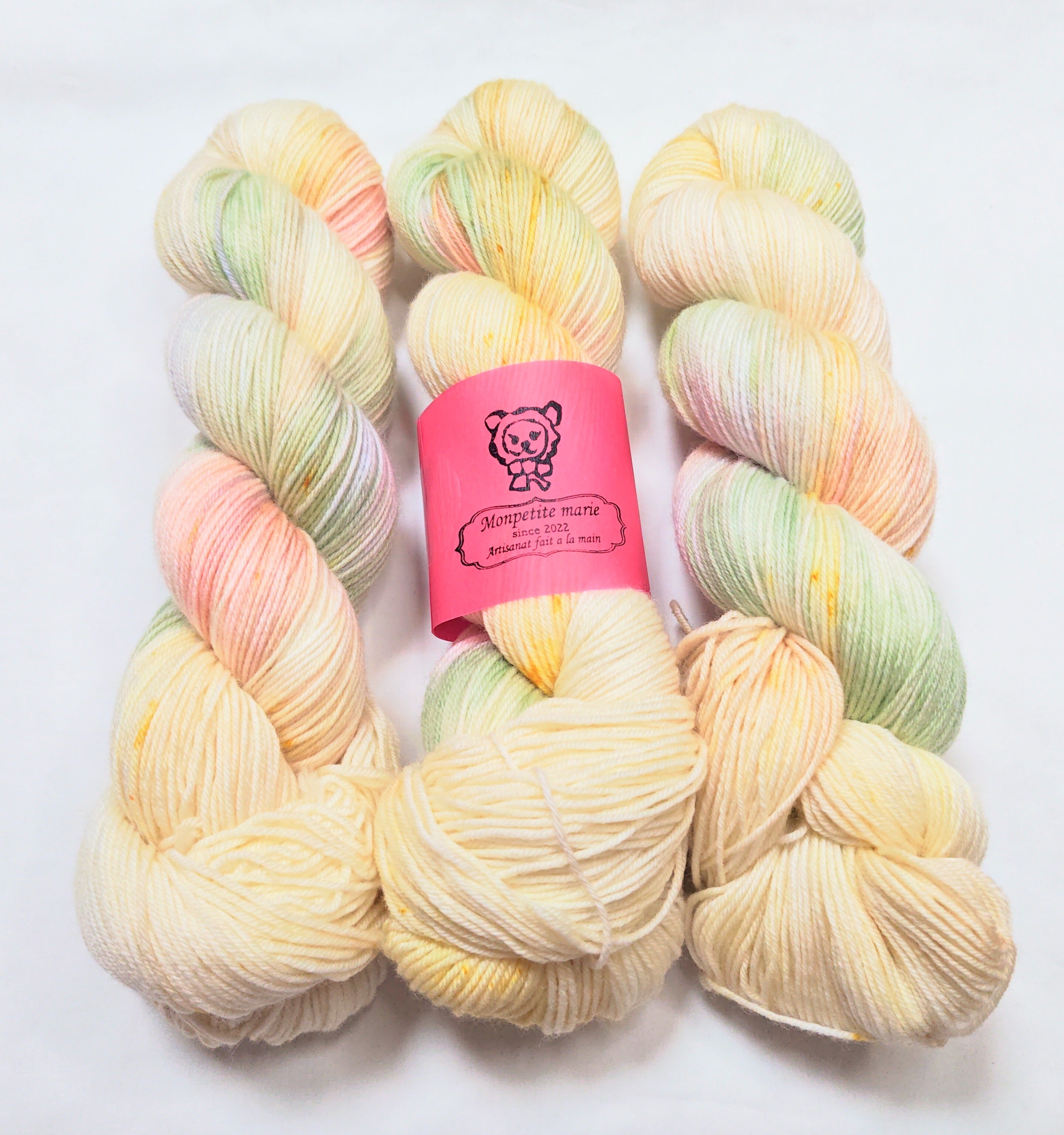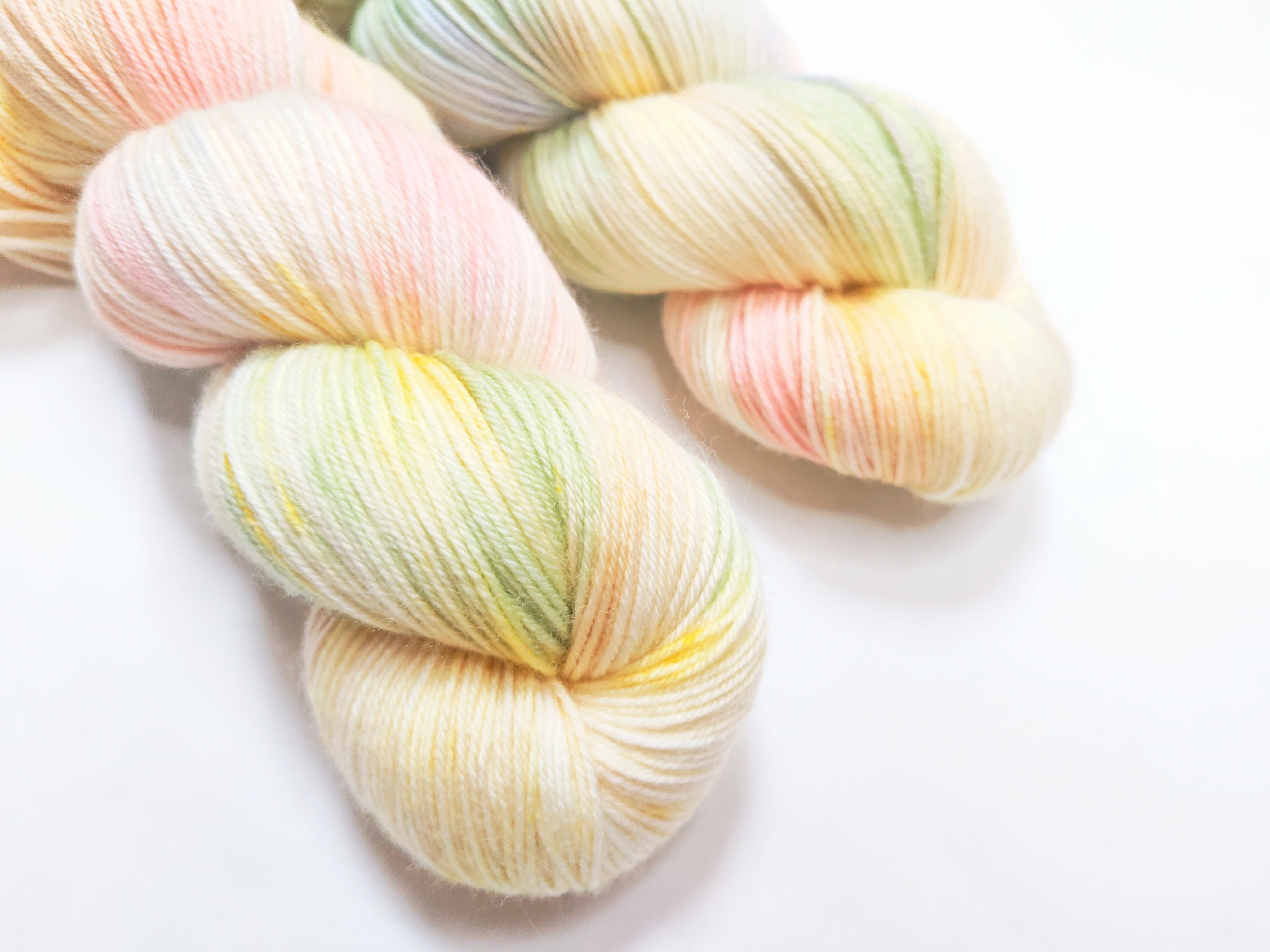 防縮加工されたエクストラファインメリノウール80%ナイロン20%を含みます。中細 fingering weight 4本よりのソックヤーンです。