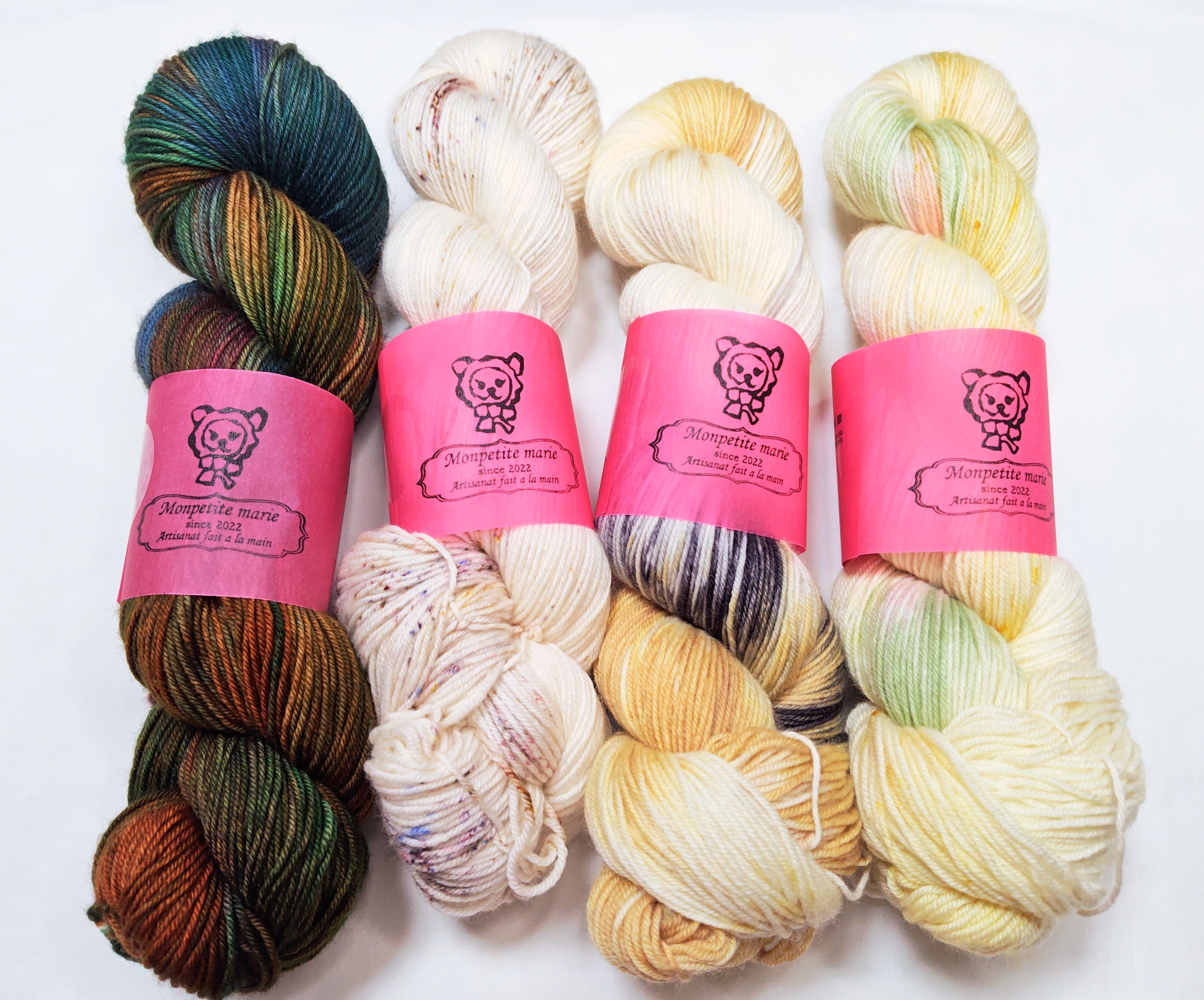 手染め毛糸の性質上、特に濃い色合いのものは染料を多く含んでいますので、色落ち、色移りがございます。他のものとは分けてお洗濯をお願いいたします。