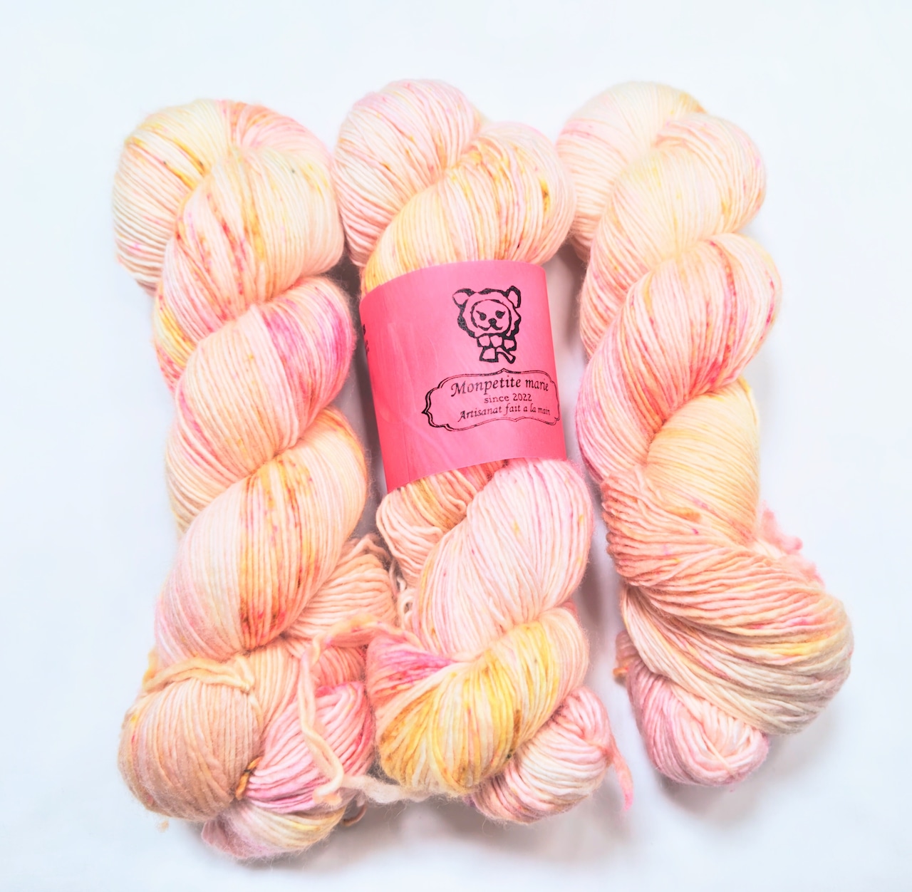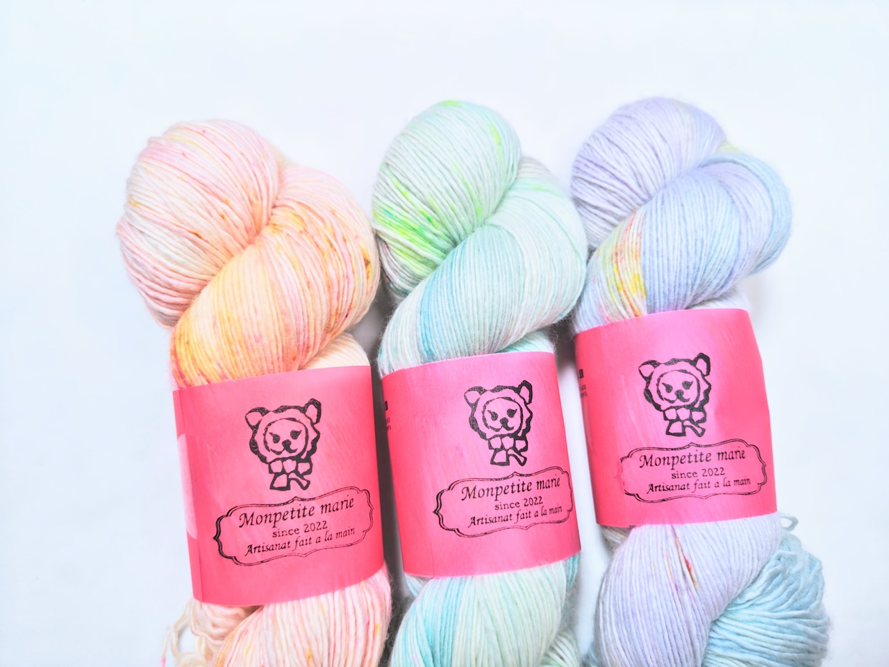 手染めの特徴で、全く同じものを染めることができません。柄や模様の出方は編む方の手加減や、使う針、編み方によって変わってきます。見本はあくまで参考です。できるだけ商品と同じ色に近づけて撮影していますが、お使いのモニターによって違う色合いに見えることがあります。