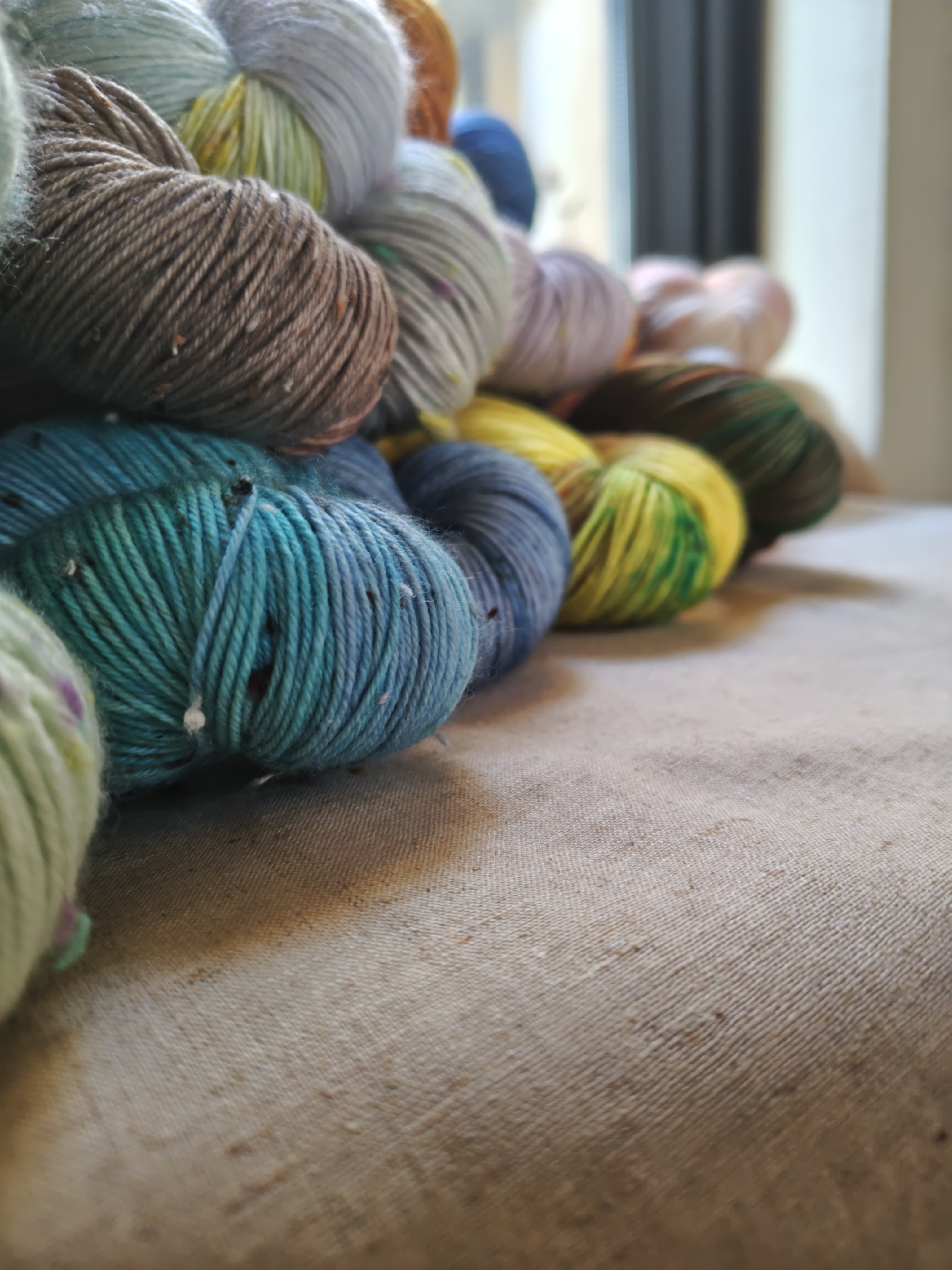 手染め毛糸の性質上、特に濃い色合いのものは染料を多く含んでいますので、色落ち、色移りがございます。他のものとは分けてお洗濯をお願いいたします。