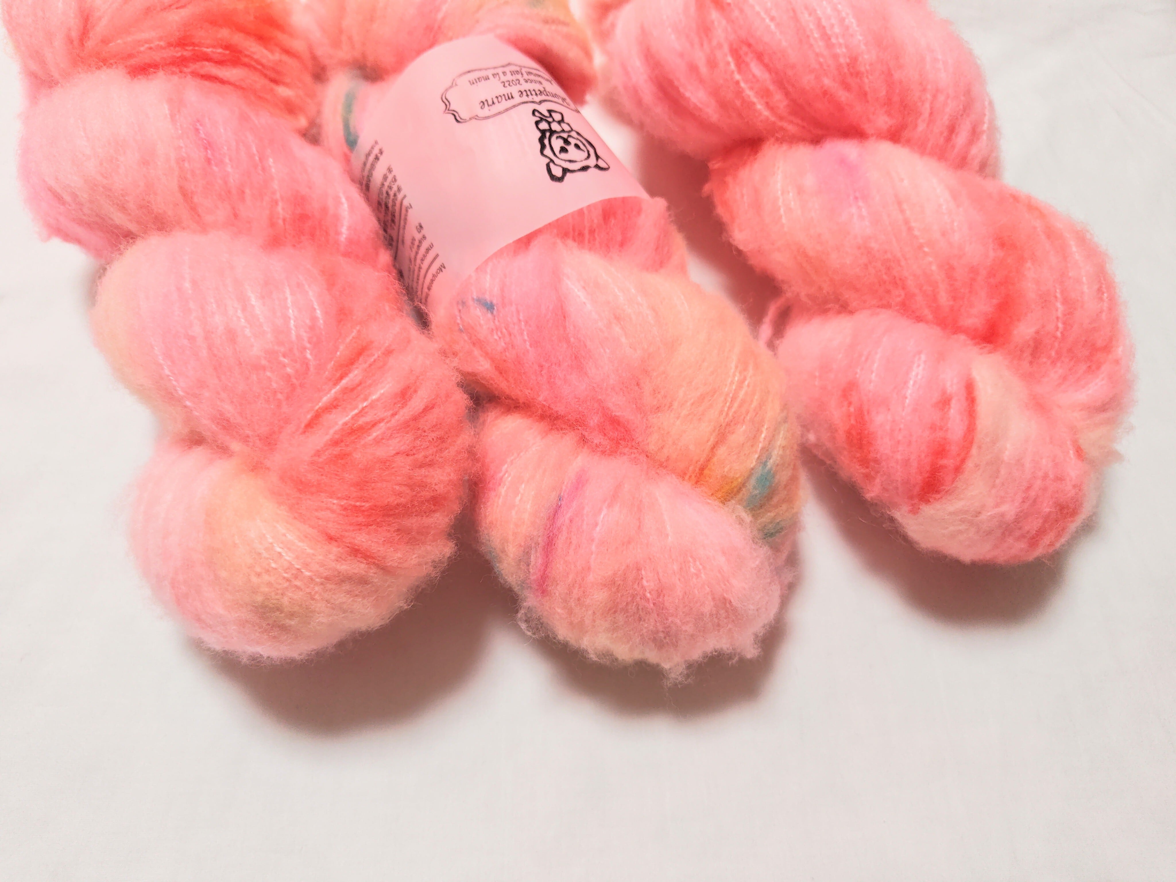 金色は入ってないんですけど、ふわふわの糸で染めてみました。
