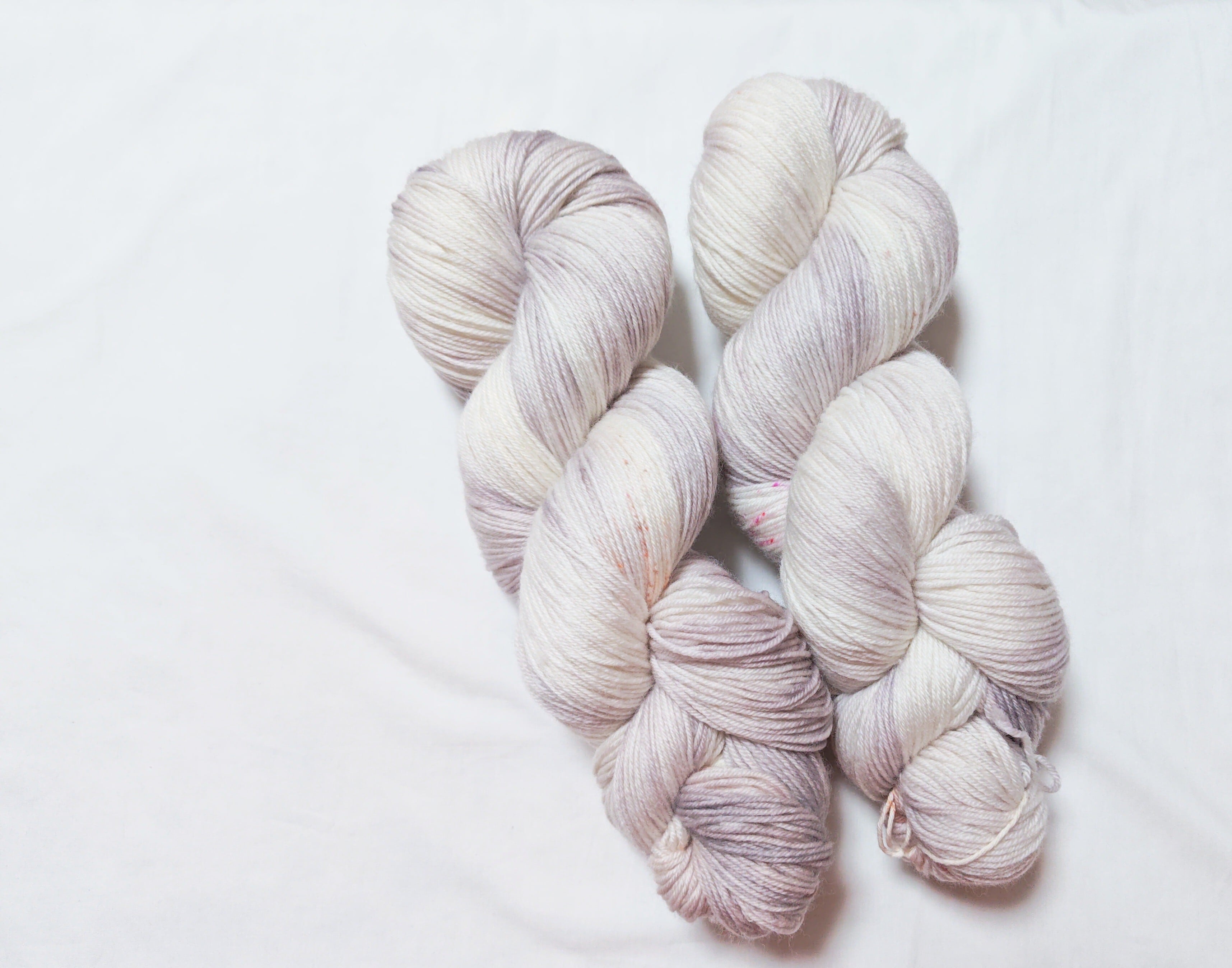 防縮加工されたファインメリノウール75%ナイロン25%を含みます。中細 fingering weightの4本よりの糸です。詳しくは、yarn baseをご覧ください。