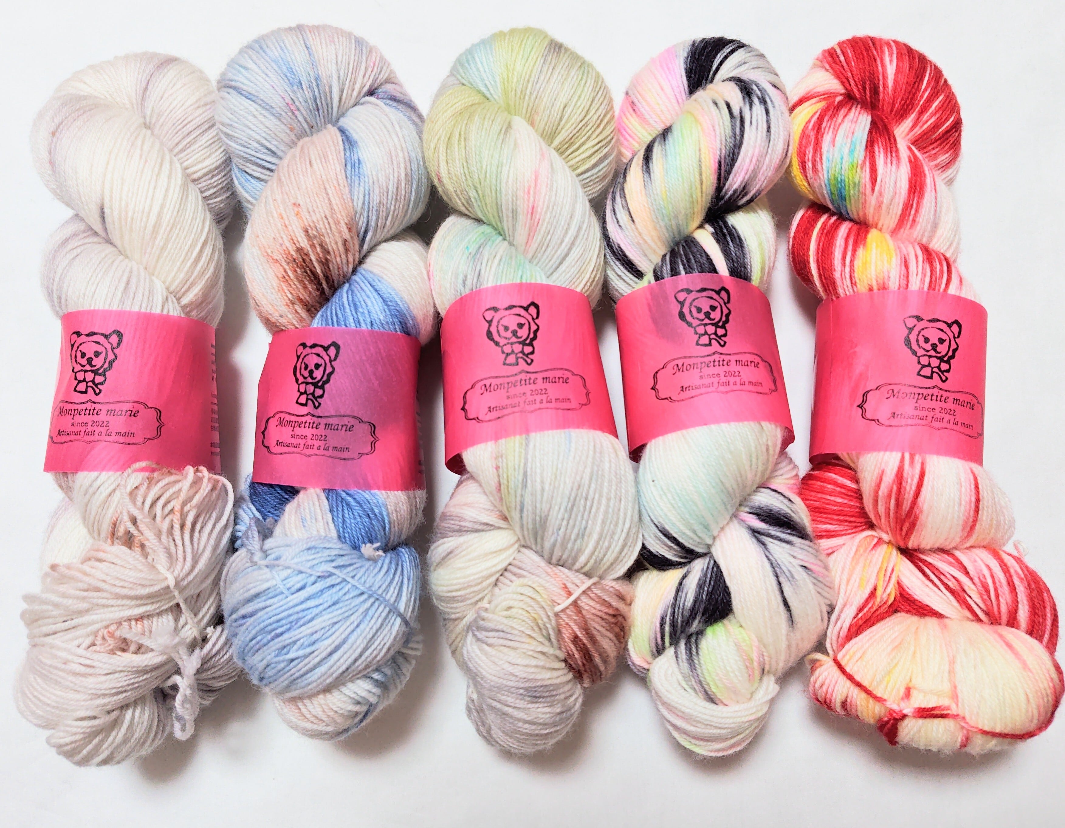 手染めの特徴で、全く同じものを染めることができません。柄や模様の出方は編む方の手加減や、使う針、編み方によって変わってきます。見本はあくまで参考です。できるだけ商品と同じ色に近づけて撮影していますが、お使いのモニターによって違う色合いに見えることがあります。
