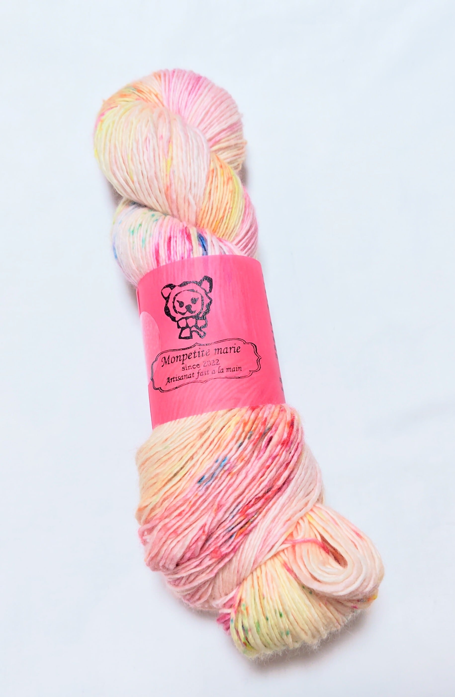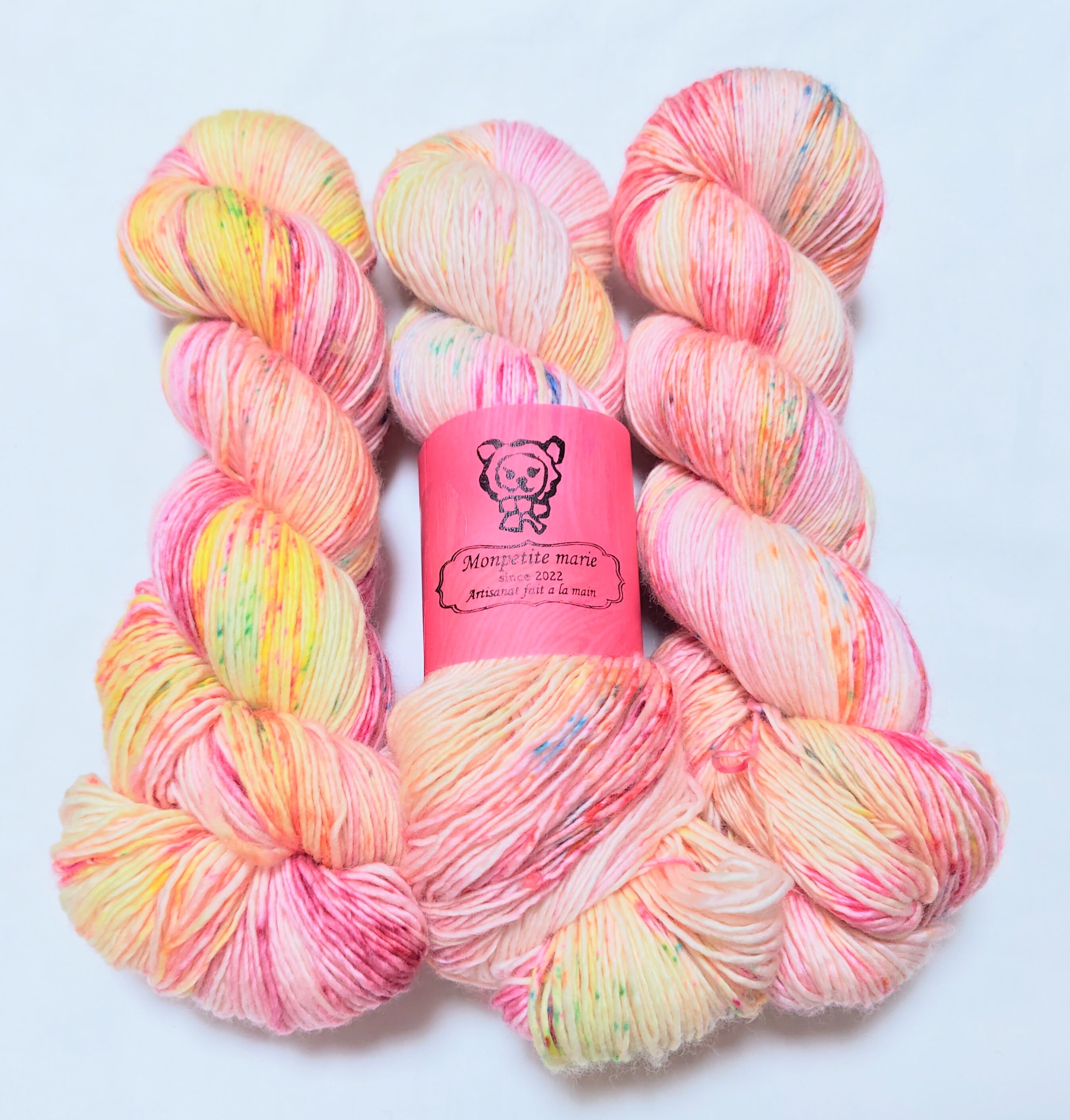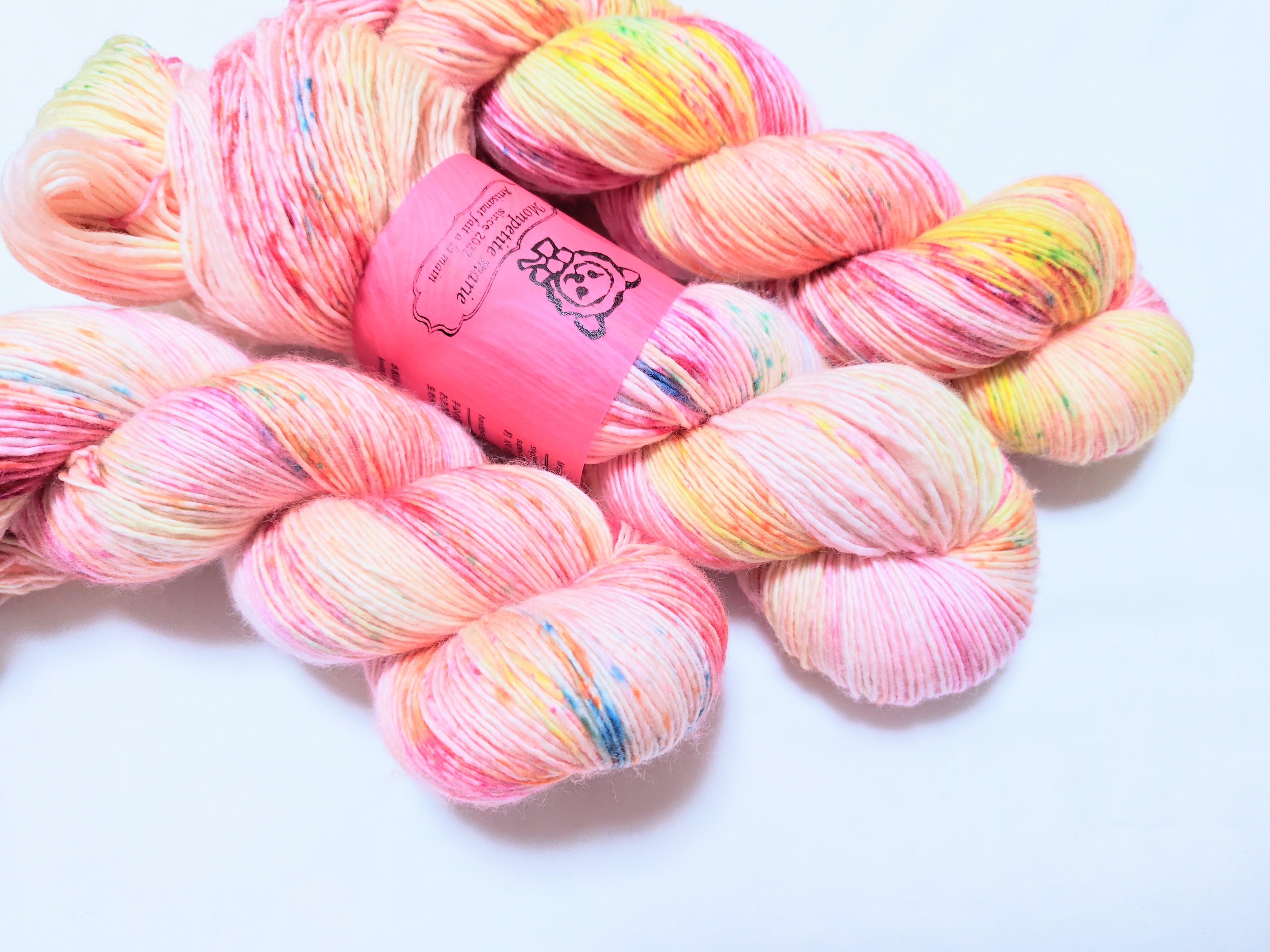 この糸、実はとてもとても探し回ったのです。この素晴らしい手触りのクオリティの毛糸が染めたくて。何社も、いくつかのmilも、とにかく探し回って、サンプルを取り寄せて、染めてみて、この糸が最高というものをやっと見つけた時はとても嬉しかったです。