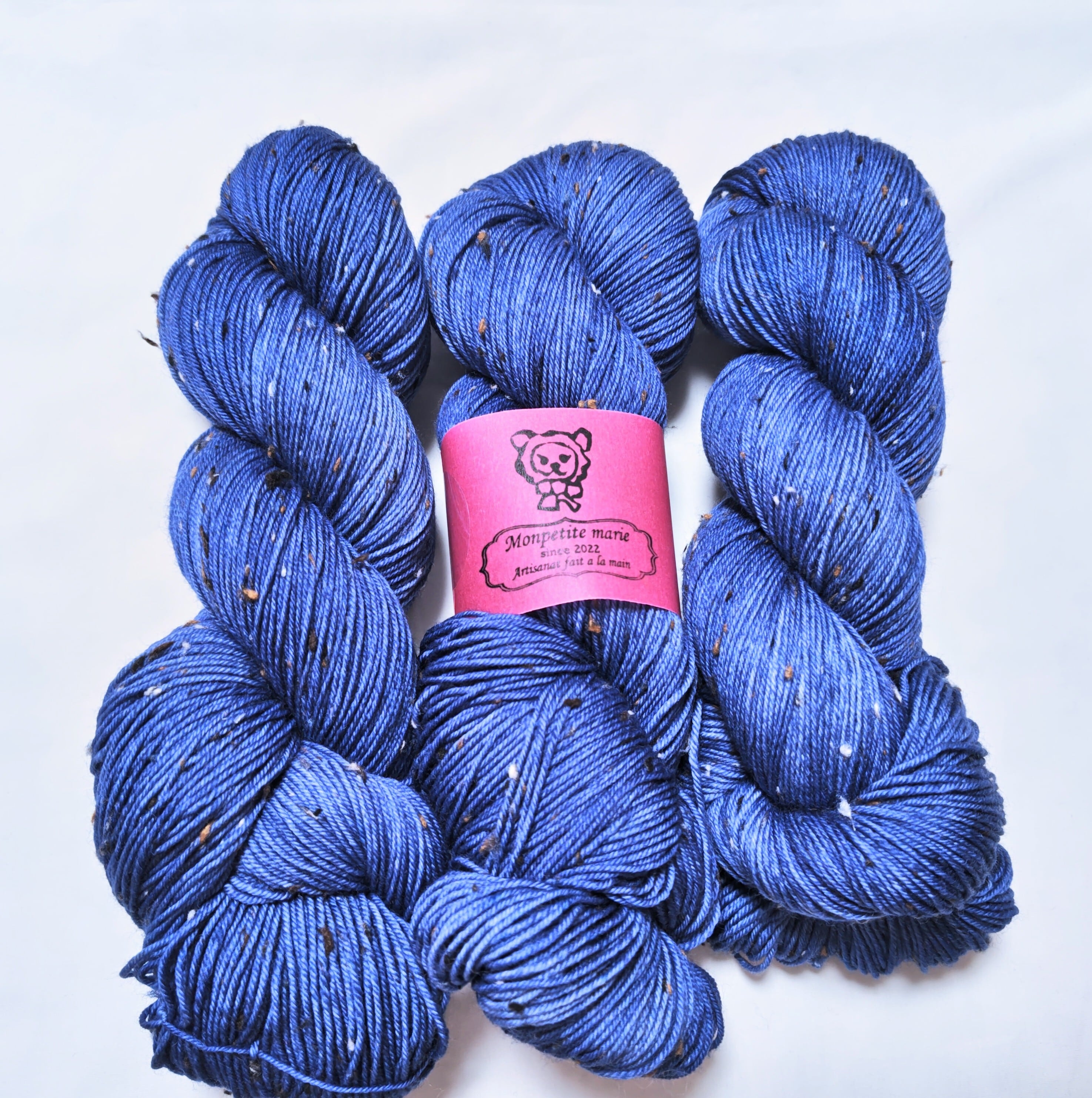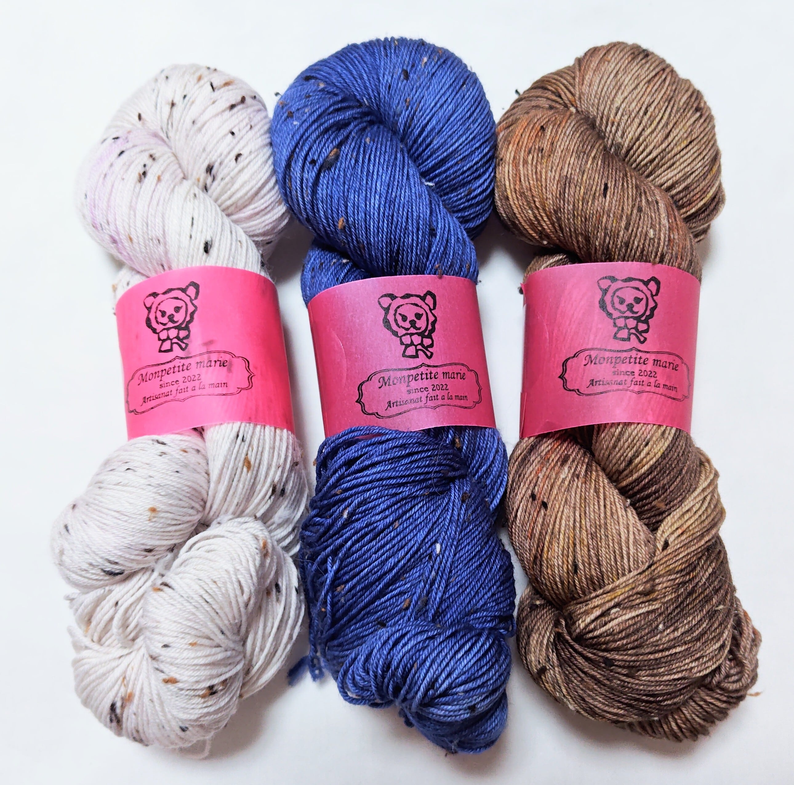 手染めの特徴で、全く同じものを染めることができません。柄や模様の出方は編む方の手加減や、使う針、編み方によって変わってきます。見本はあくまで参考です。できるだけ商品と同じ色に近づけて撮影していますが、お使いのモニターによって違う色合いに見えることがあります。