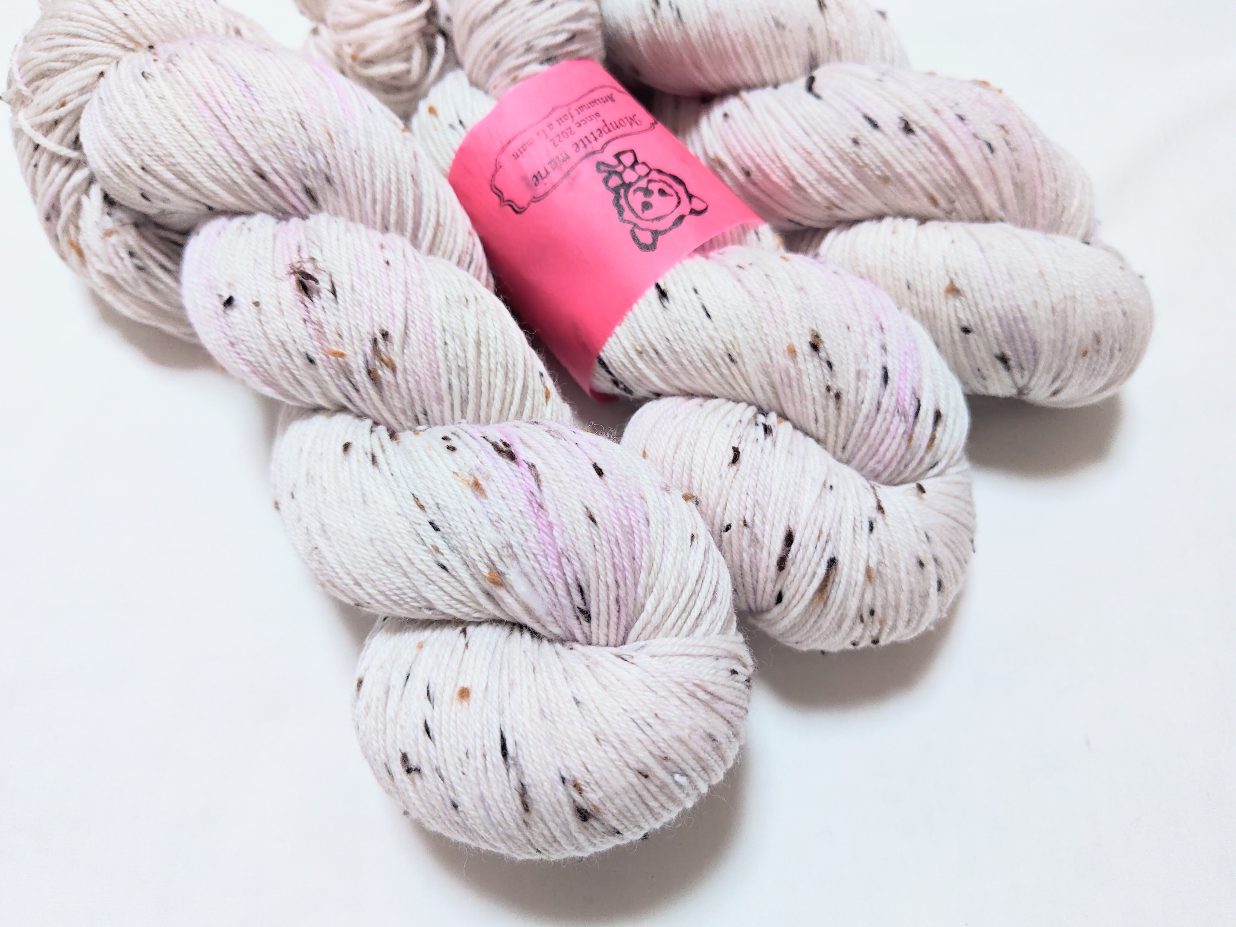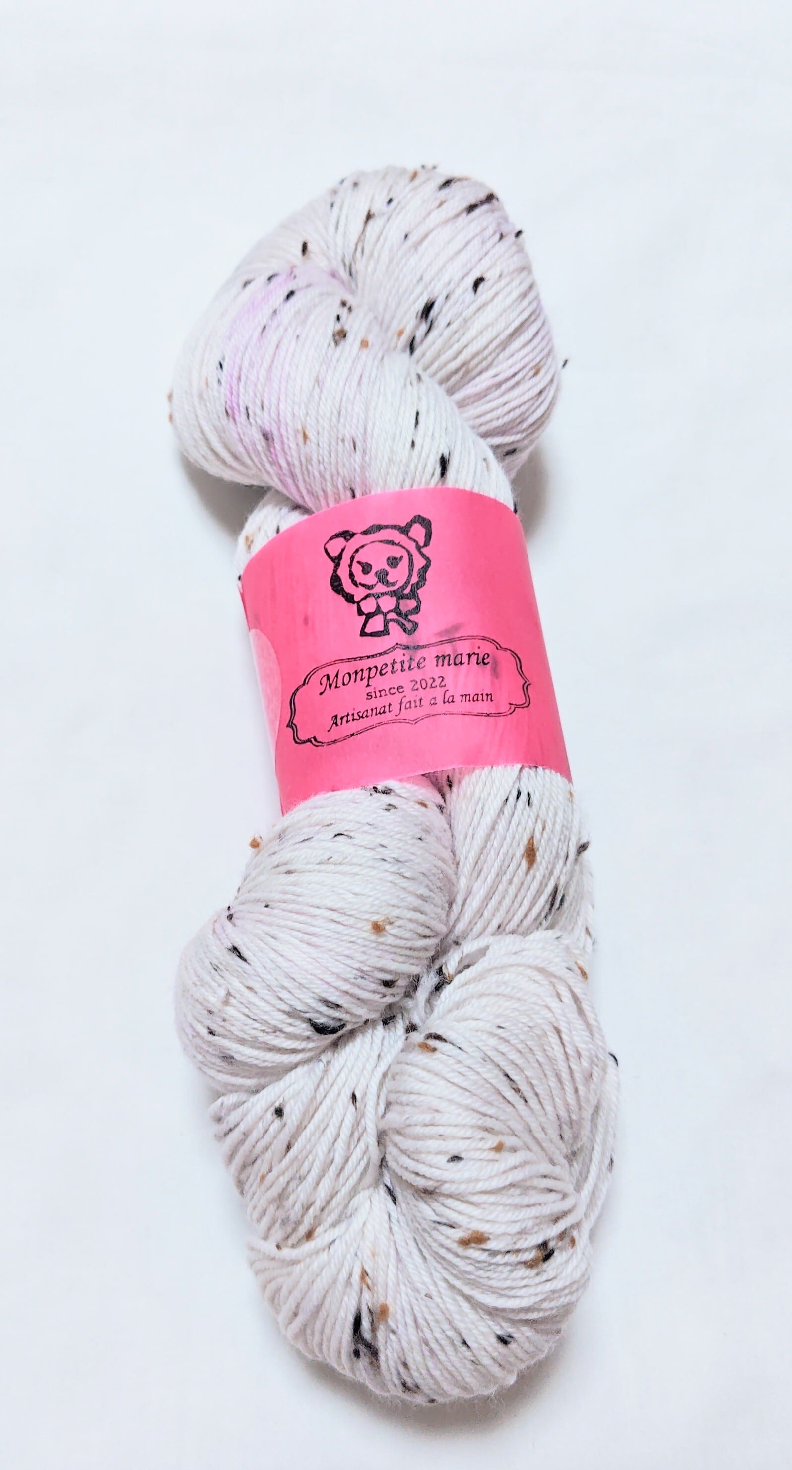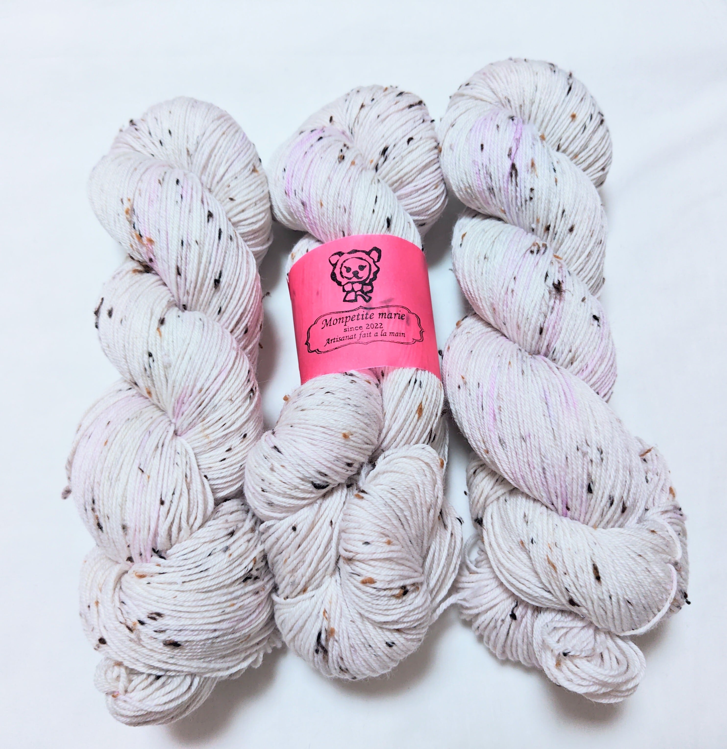 シマエナガの白い羽。コロンとかわいい冬毛に、桜の花びらを散らしてみました。少しだけ薄いピンクがアクセントのネップヤーン。春の訪れを感じてください。