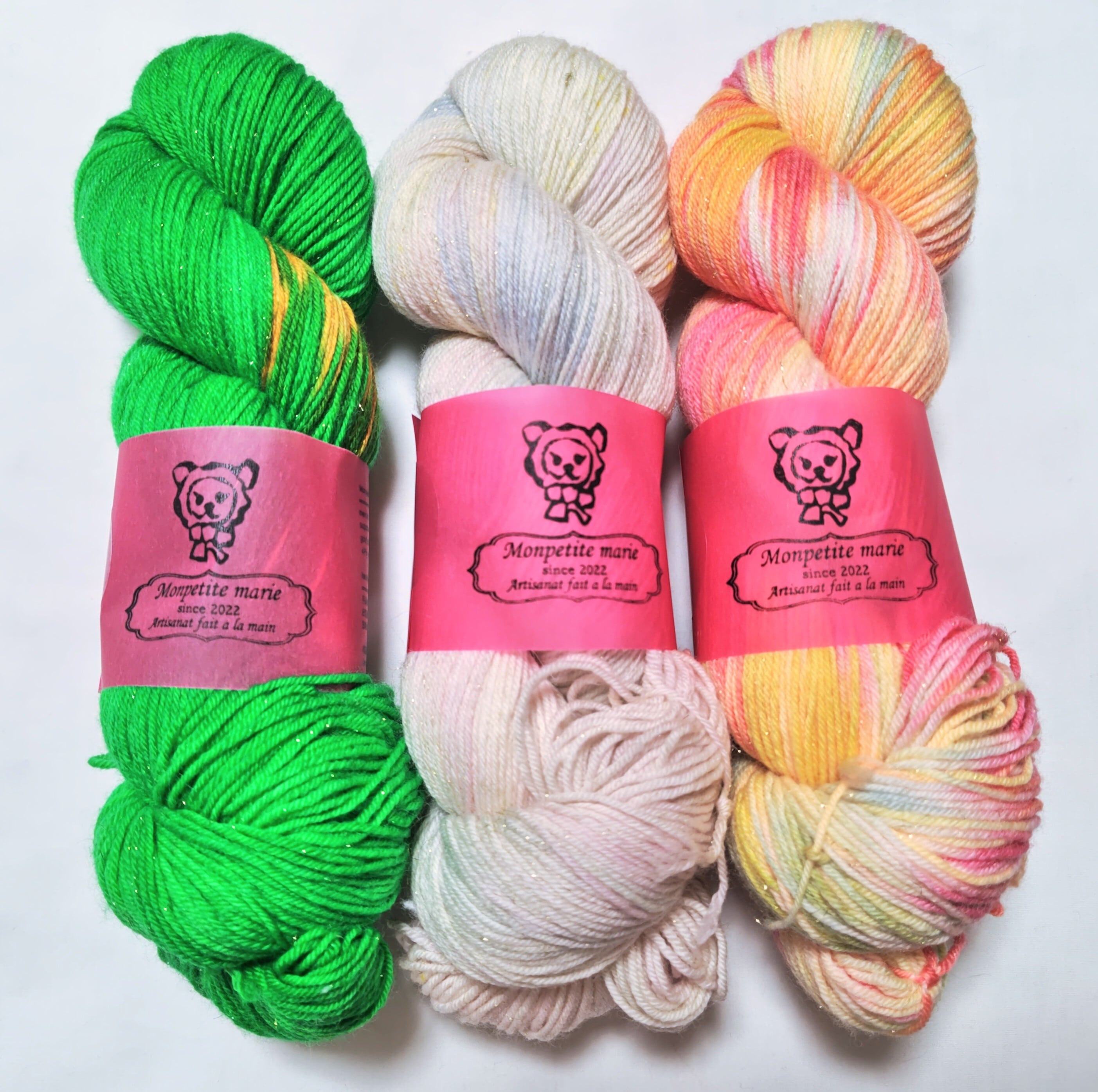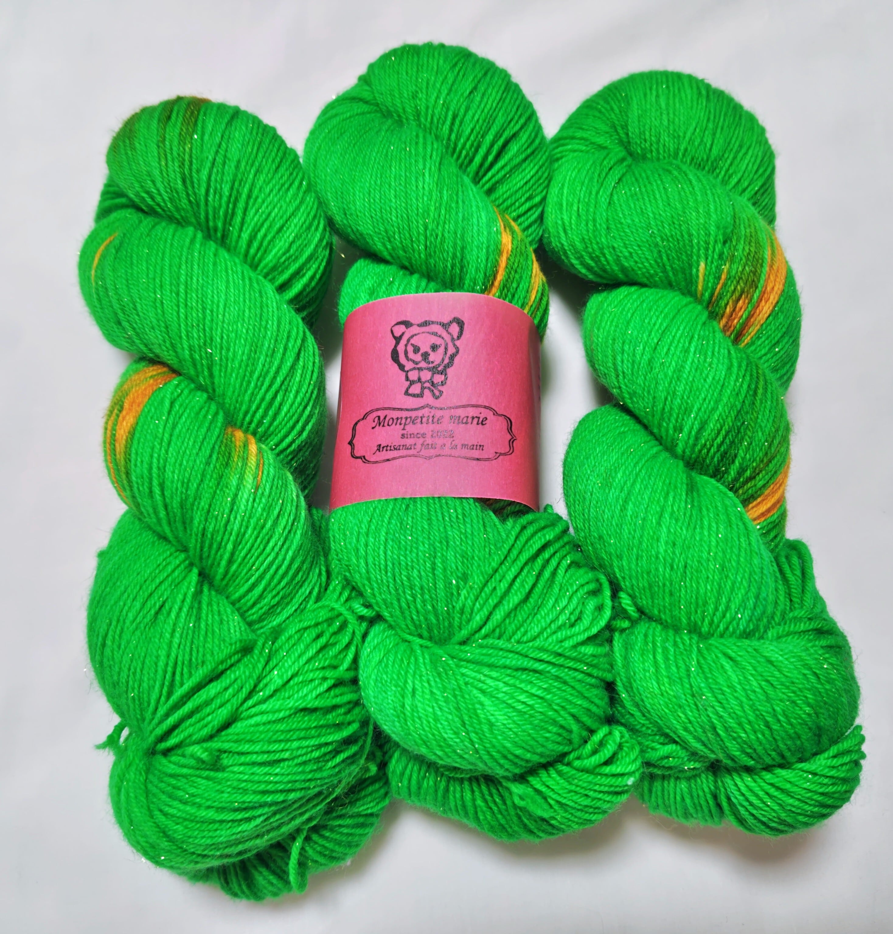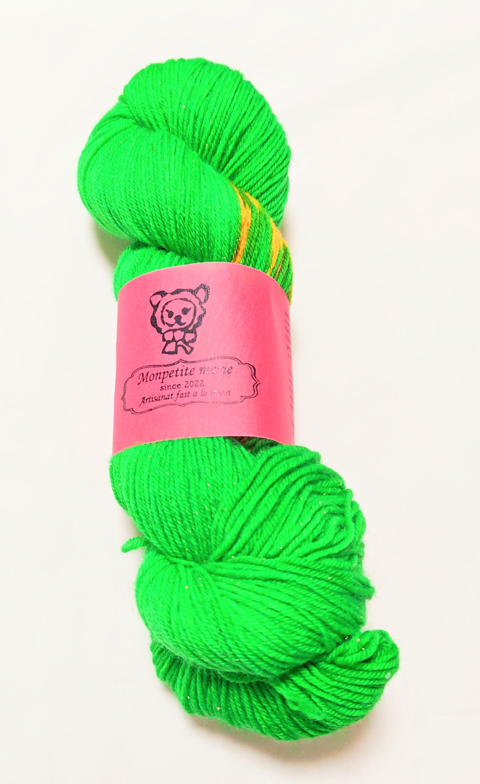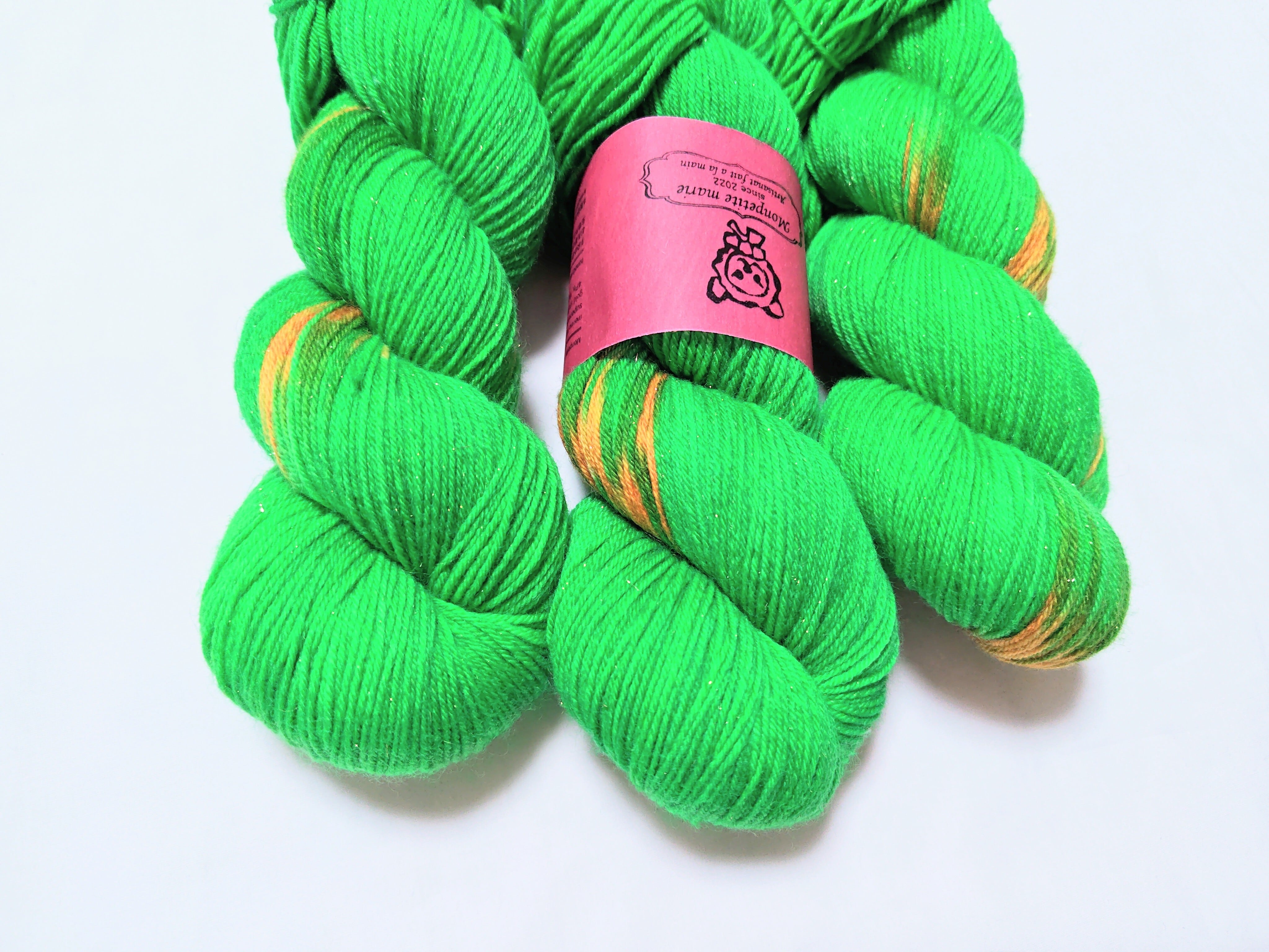 キラキラの金色のステリーナが入った手染め毛糸です。