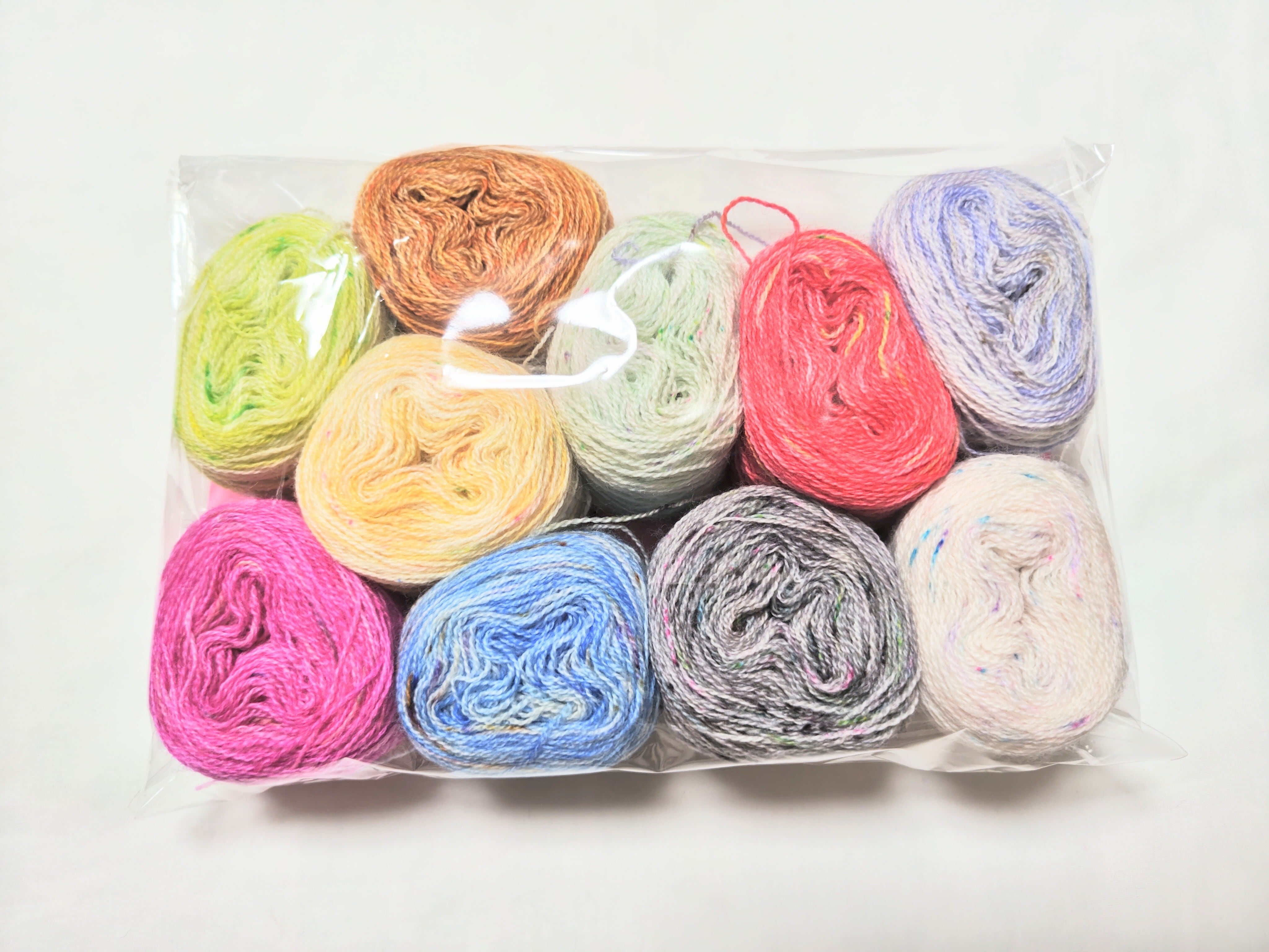 各色10g前後の玉巻きした毛糸が10種類。
