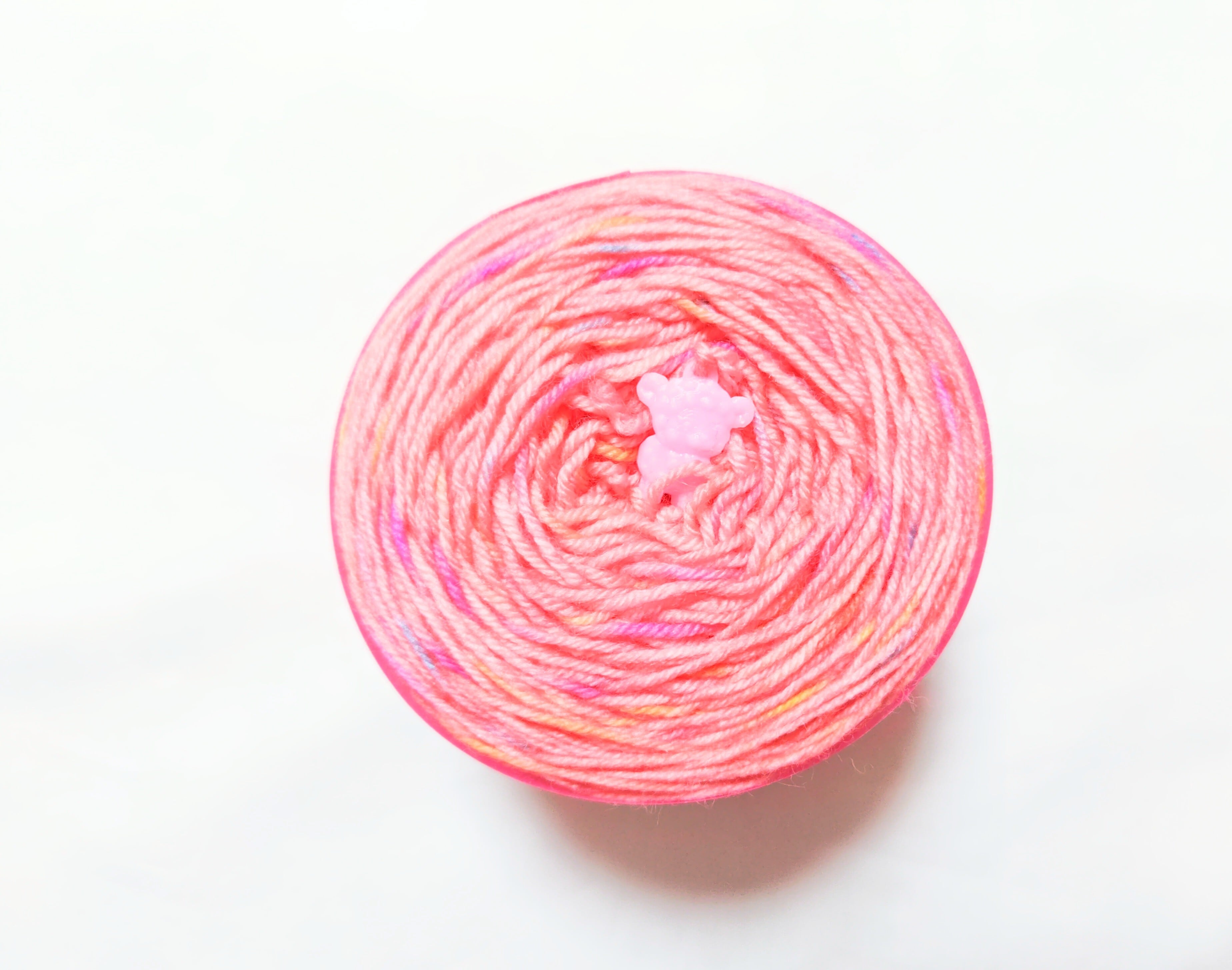 糸端がわかりやすいように樹脂で出来たチャームがついています。編む時に取り外してご使用下さい。(チャームは小さなものなのでお子さまや、ペットの誤飲等にお気をつけ下さい。)