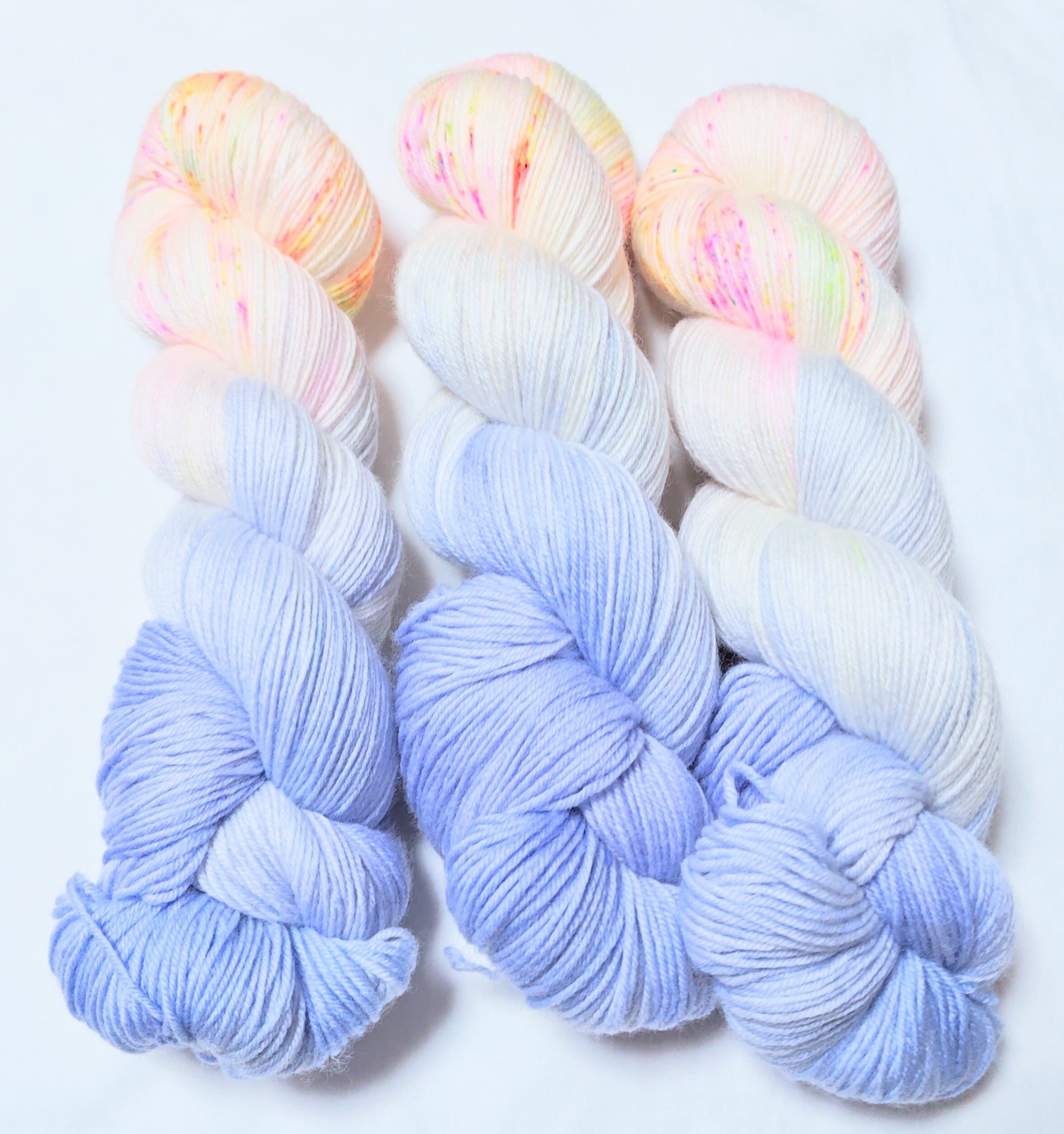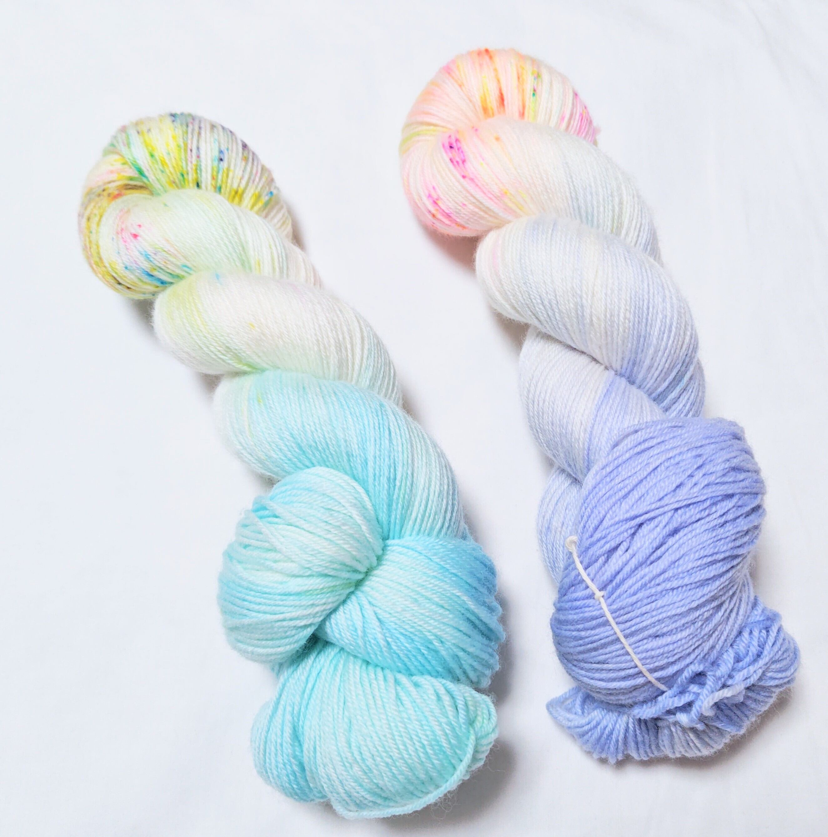 防縮加工されたファインメリノウール75%ナイロン25%を含みます。中細 fingering weightの4本よりの糸です。詳しくは、yarn baseをご覧ください。