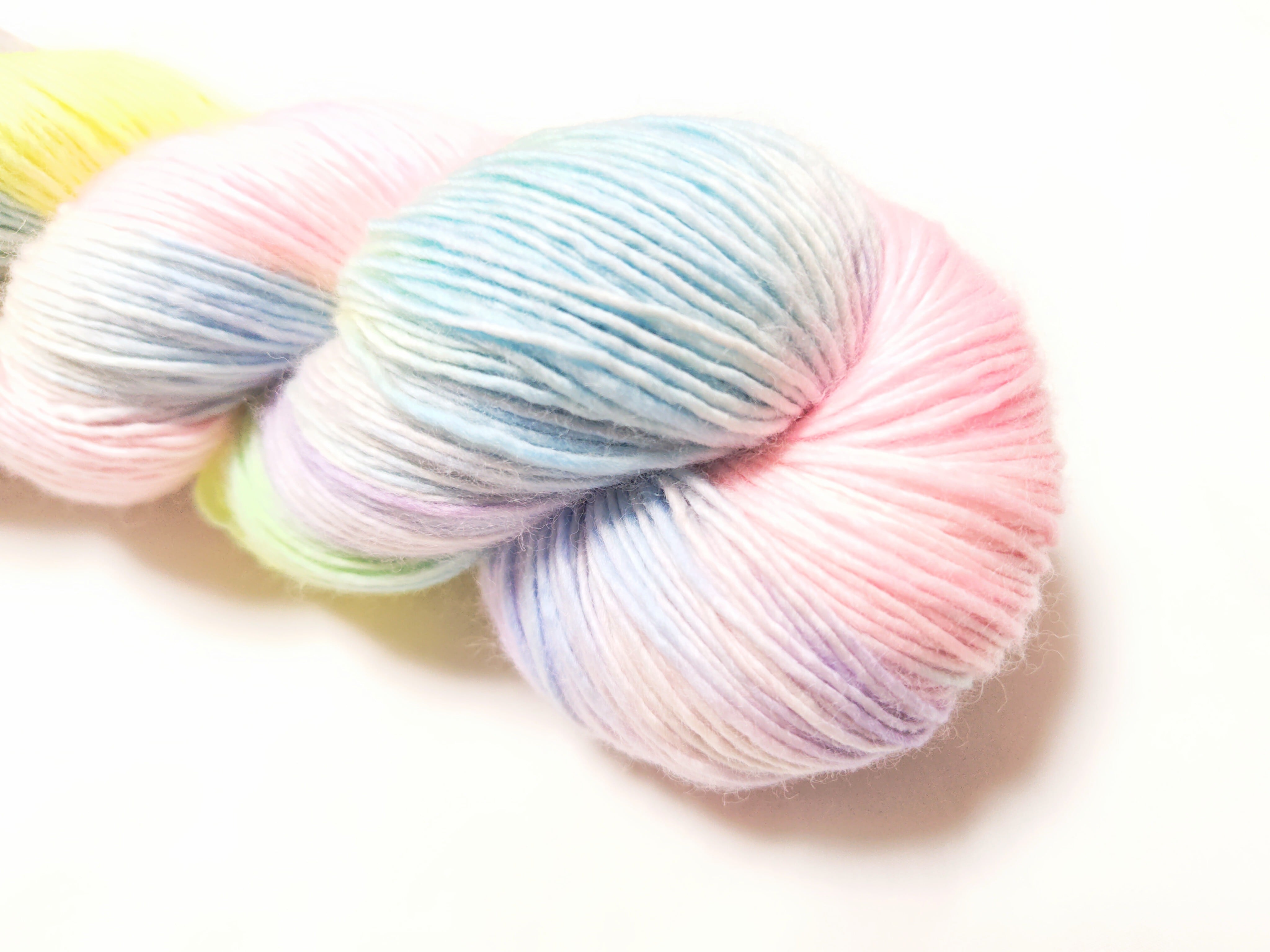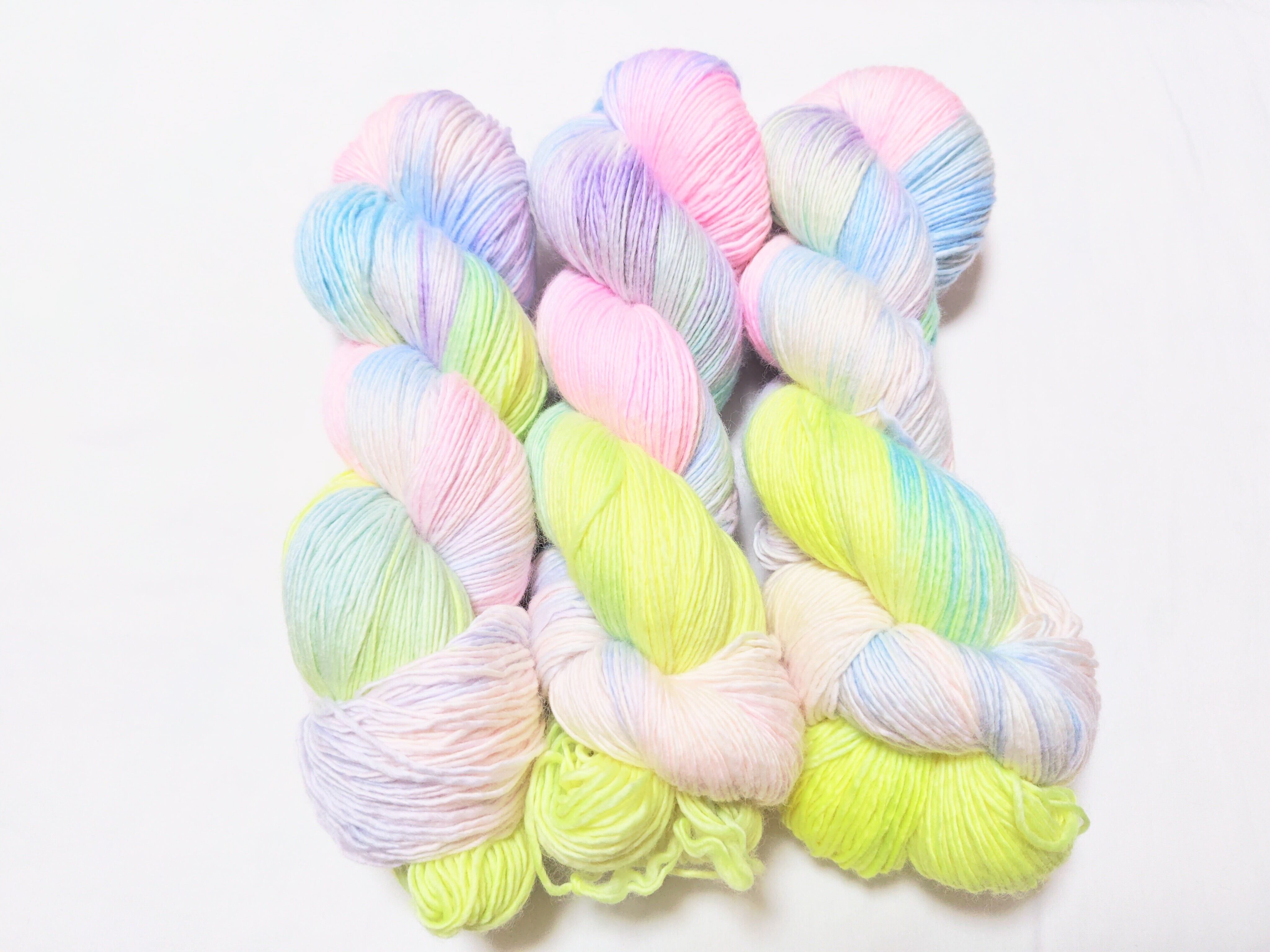この糸、実はとてもとても探し回ったのです。この素晴らしい手触りのクオリティの毛糸が染めたくて。何社も、いくつかのmilも、とにかく探し回って、サンプルを取り寄せて、染めてみて、この糸が最高というものをやっと見つけた時はとても嬉しかったです。