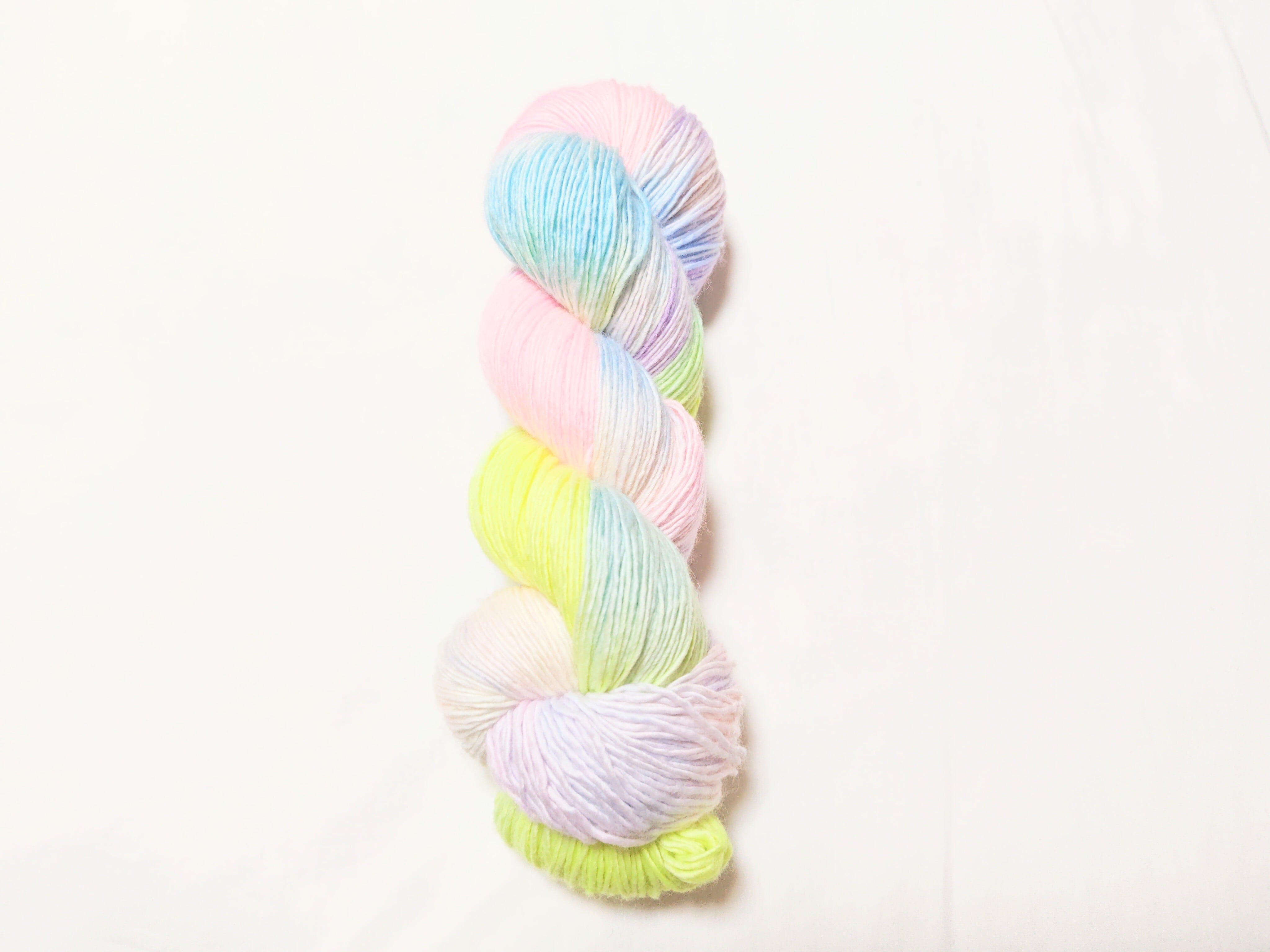 そんな楽しさが詰まったお菓子の本を開くときめく気持ちを手染め毛糸に乗せました。