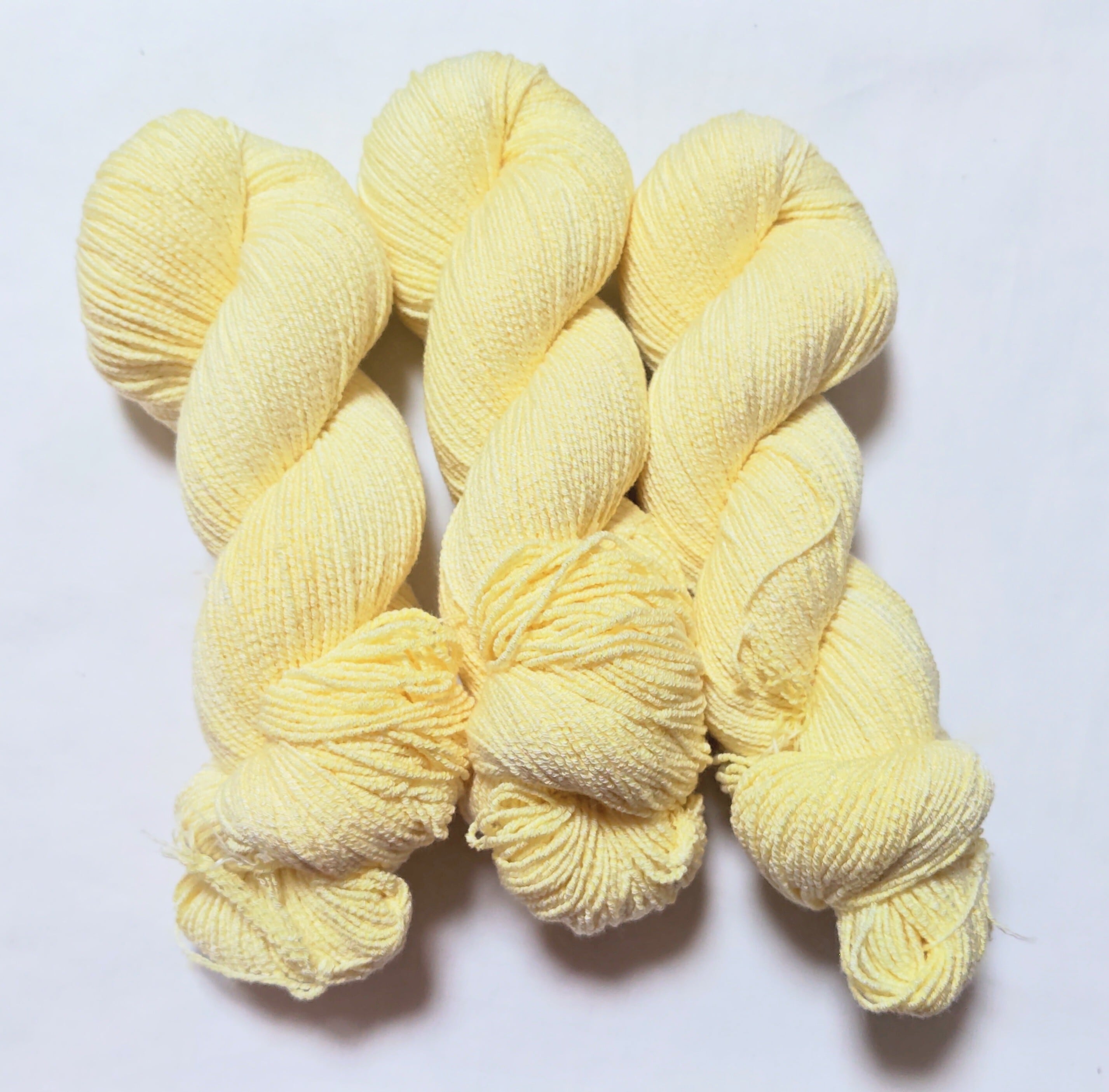 蛍光色に近い明るい黄色のストレッチコットン糸です。