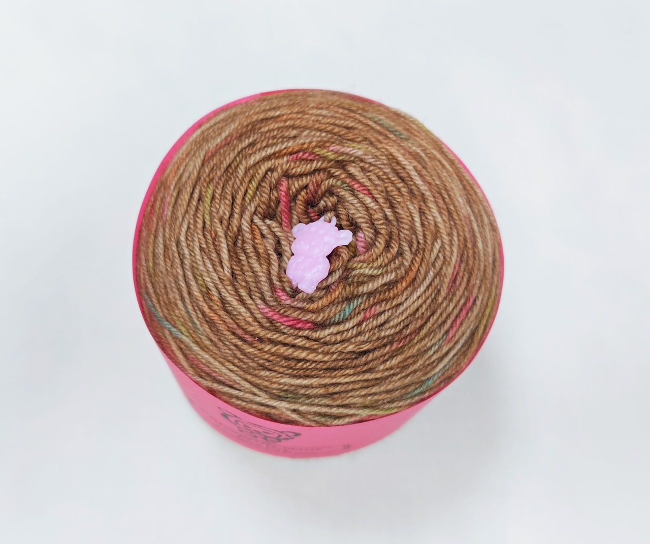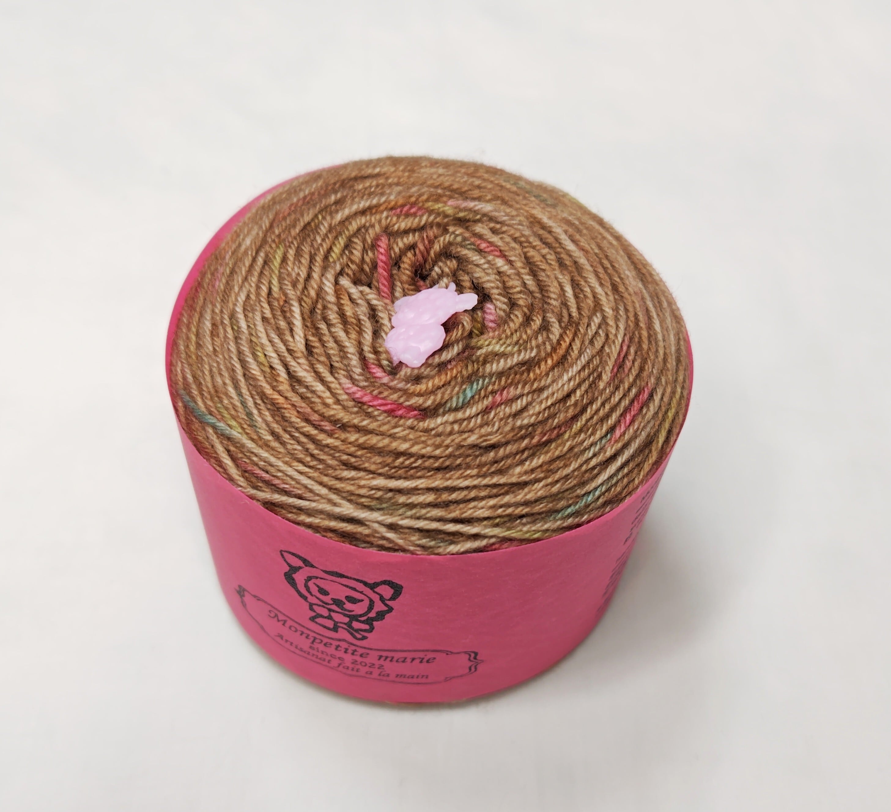『ドロップス』の暖かい茶色、モカバージョンです。あめ玉のように可愛くて彩りいっぱいの粒々が沢山ちりばめられています。見るとワクワク編むとウキウキ楽しくなる毛糸です。