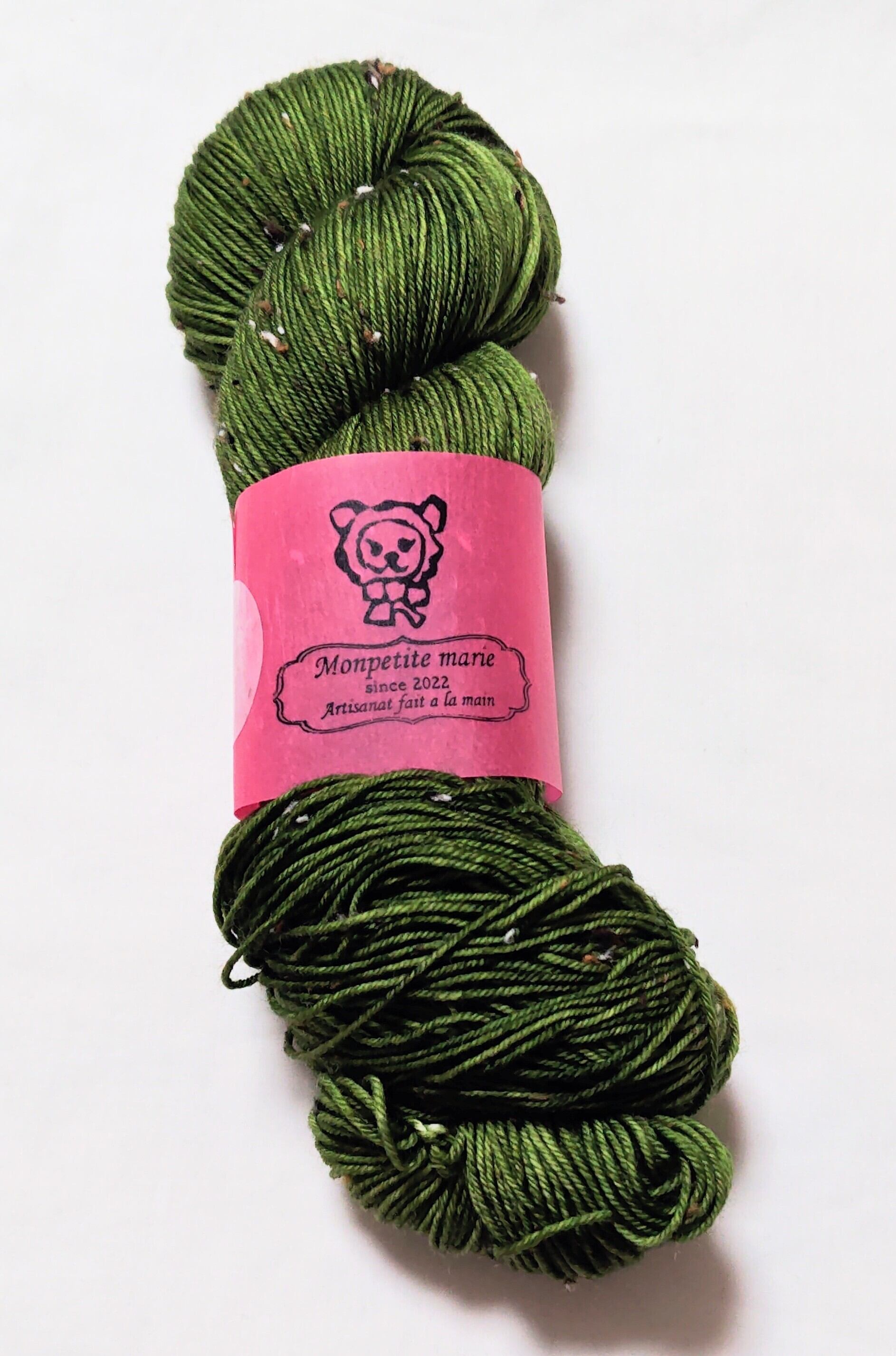 手染めの特徴で、全く同じものを染めることができません。柄や模様の出方は編む方の手加減や、使う針、編み方によって変わってきます。見本はあくまで参考です。できるだけ商品と同じ色に近づけて撮影していますが、お使いのモニターによって違う色合いに見えることがあります。